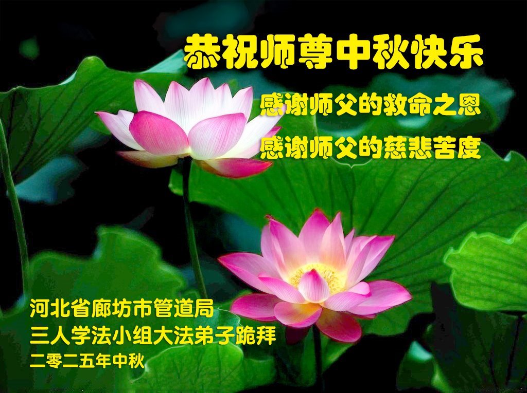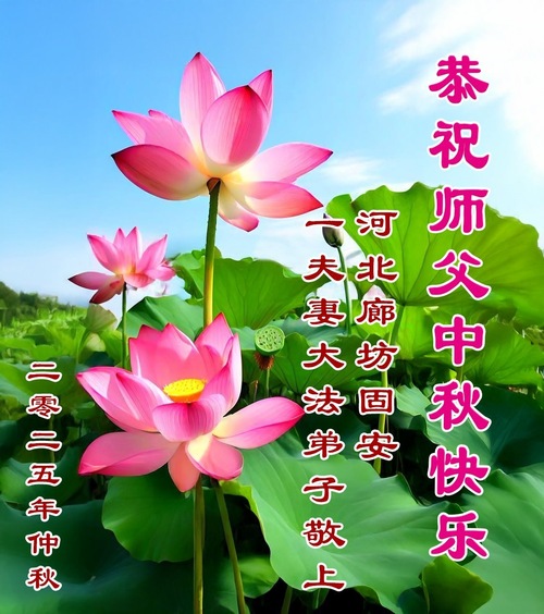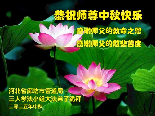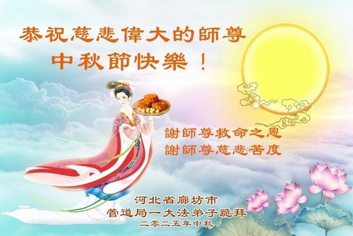Falun-Dafa-Praktizierende in der Stadt Langfang wünschen dem verehrten Meister respektvoll ein frohes Mittherbstfest! (19 Grüße)