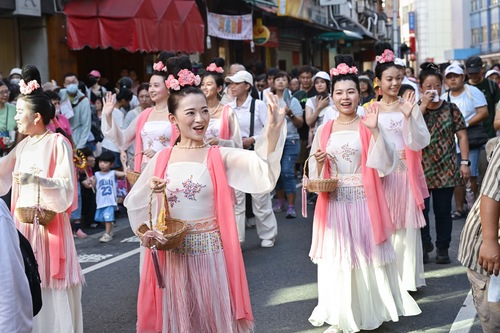 Die Tian Guo Marching Band spielte mehrere Stücke, darunter „Falun Dafa ist gut“ und „Falun Heiliger König“. Viele Zuschauer tanzten spontan zur Musik, machten Fotos von den Feentänzerinnen und spendeten begeisterten Applaus. Immer wieder hörte man Rufe wie: „Ihr seid großartig!“, „Ihr seid die Besten!“ oder „Eure Musik ist so beruhigend!“