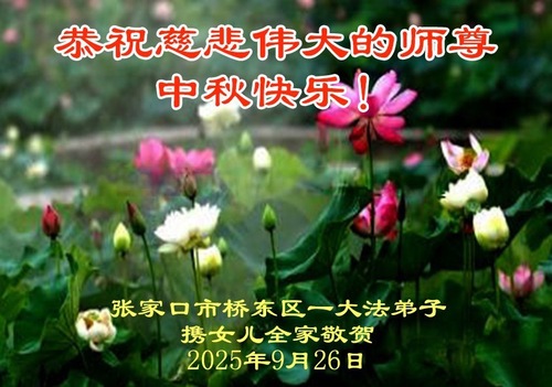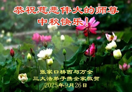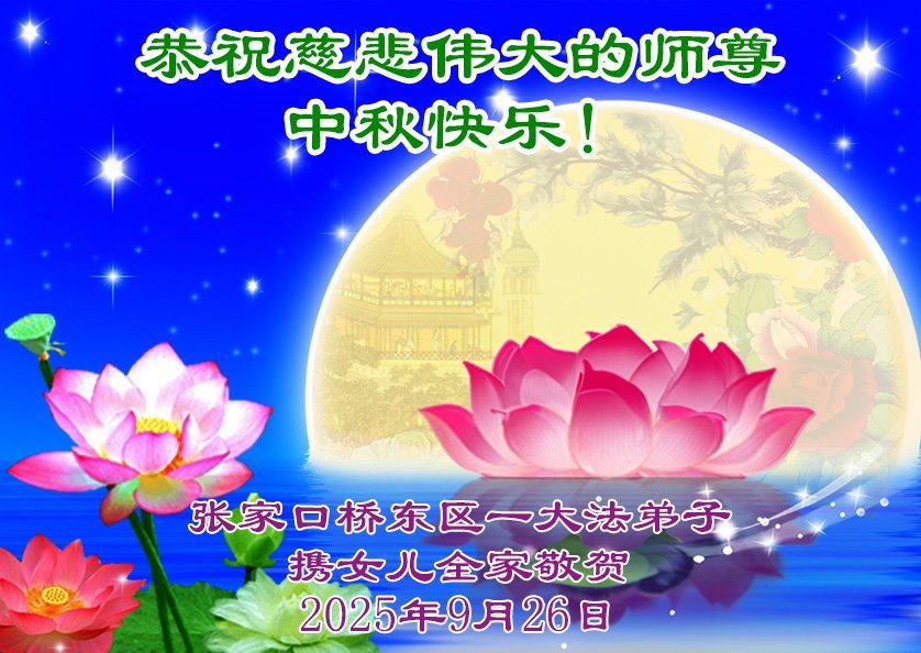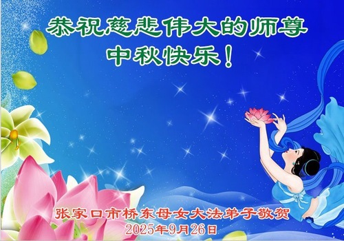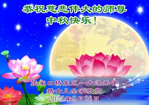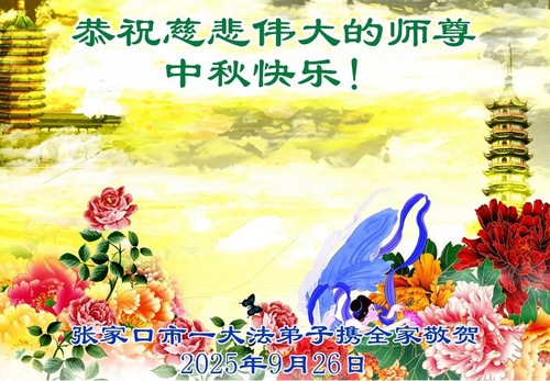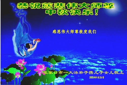 (Minghui.org) Zum Mittherbstfest senden Falun-Dafa-Praktizierende aus aller Welt Glückwünsche und Grußkarten an die Minghui-Website. Damit wünschen sie dem verehrten Meister Li Hongzhi respektvoll ein frohes Fest und danken für die Lehre des Falun Dafa mit den universellen Werten Wahrhaftigkeit, Güte und Nachsicht.