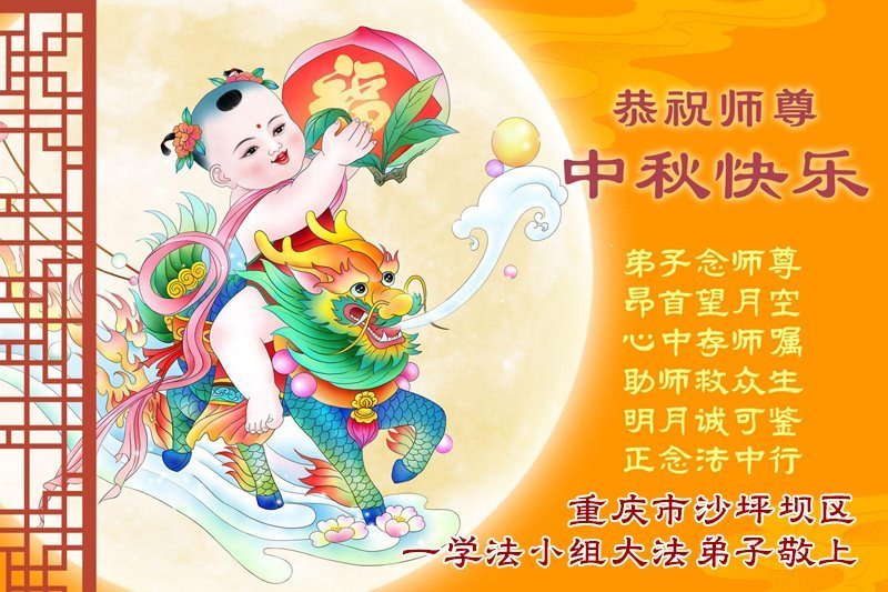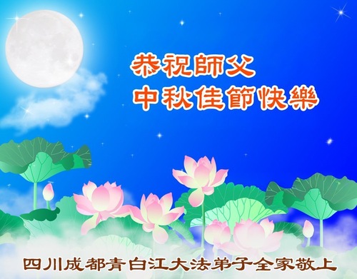 Falun-Dafa-Praktizierende in den Städten Chongqing und Chengdu wünschen dem verehrten Meister respektvoll ein frohes Mittherbstfest! (103 Grüße)