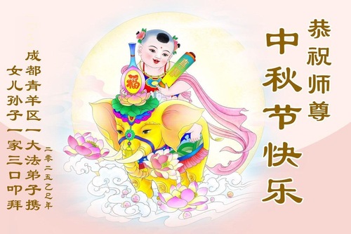 (Minghui.org) Zum Mittherbstfest senden Falun-Dafa-Praktizierende aus aller Welt Glückwünsche und Grußkarten an die Minghui-Website. Damit wünschen sie dem verehrten Meister Li Hongzhi respektvoll ein frohes Fest und danken für die Lehre des Falun Dafa mit den universellen Werten Wahrhaftigkeit, Güte und Nachsicht.