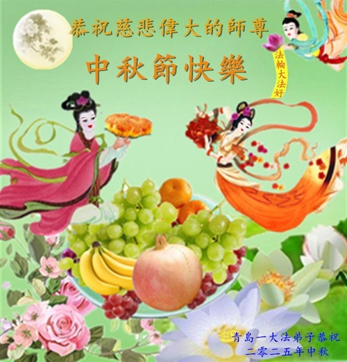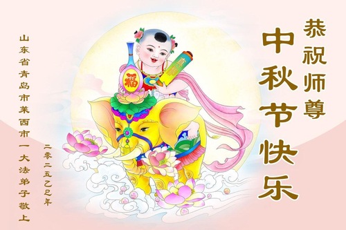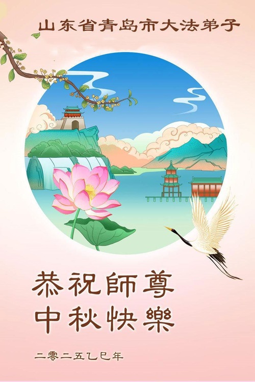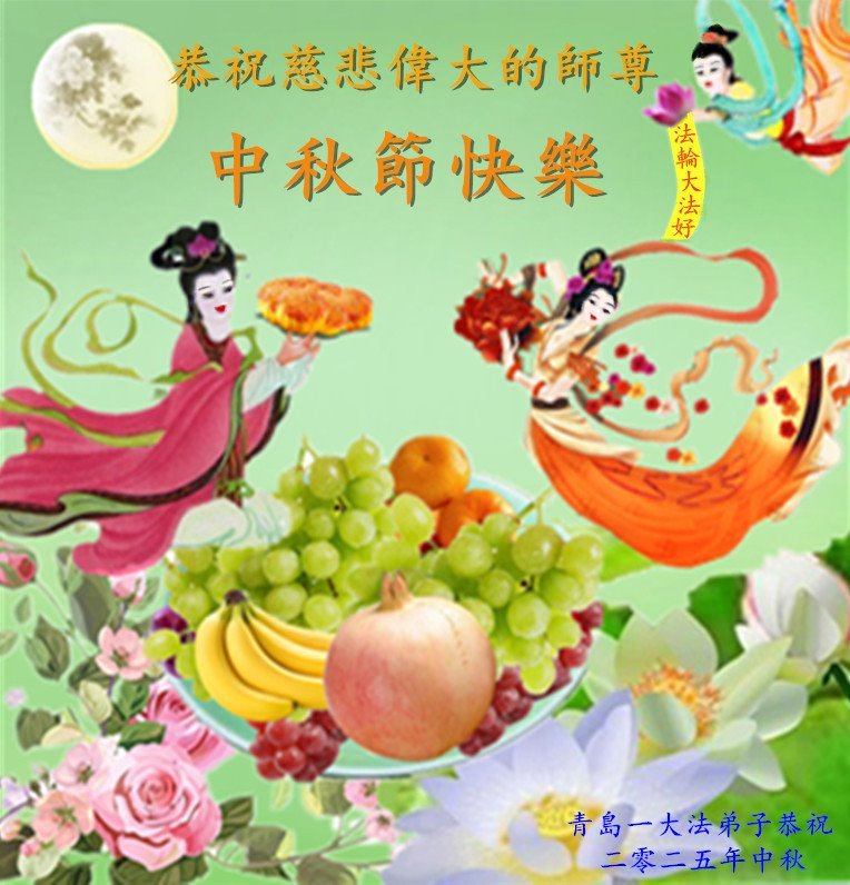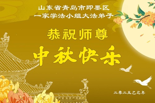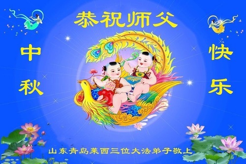 Falun-Dafa-Praktizierende in der Stadt Qingdao wünschen dem verehrten Meister respektvoll ein frohes Mittherbstfest! (96 Grüße)