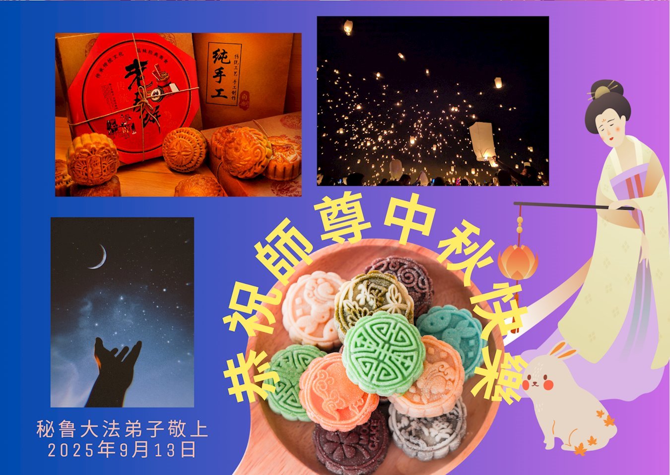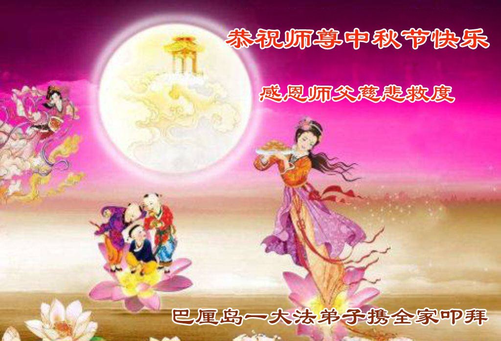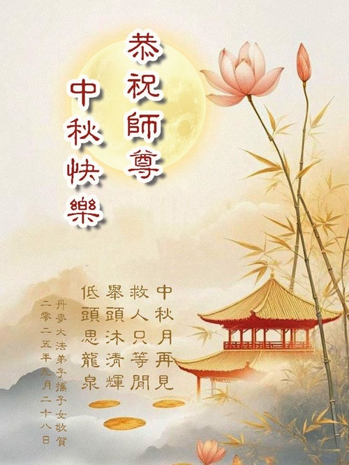 Ein Falun-Dafa-Praktizierender aus dem Iran schrieb: „Verehrter und barmherziger Meister, zu diesem Mittherbstfest sende ich Ihnen meine herzlichen Glückwünsche. Mögen alle Falun-Dafa-Praktizierenden, mich eingeschlossen, ihren Gelübden treu bleiben, sich gut kultivieren und Lebewesen erretten, sodass wir mit Ihnen in unsere wahre Heimat zurückkehren können.“