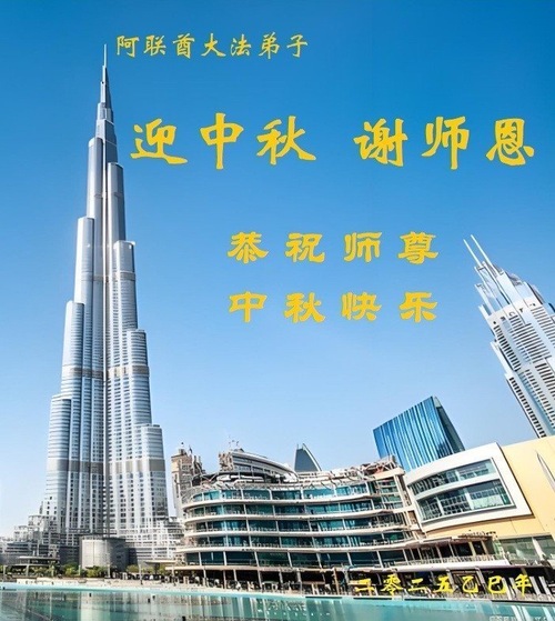 Falun-Dafa-Praktizierende aus den Vereinigten Arabischen Emiraten wünschen Meister Li ein frohes Mittherbstfest