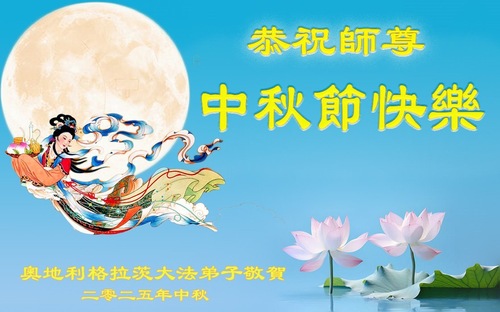Falun-Dafa-Praktizierende aus Österreich wünschen Meister Li ein frohes Mittherbstfest