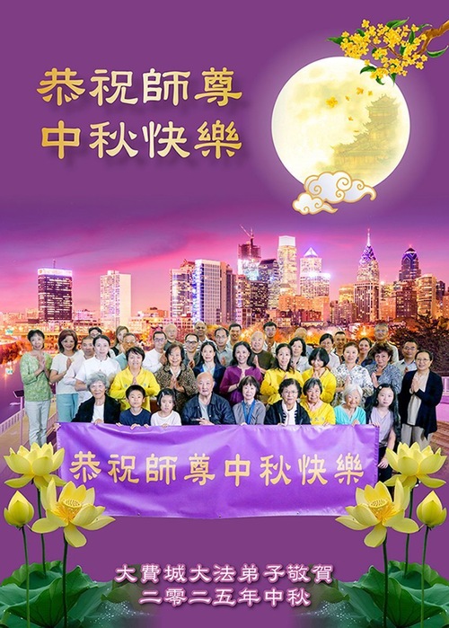 Falun-Dafa-Praktizierende aus Philadelphia im US-Bundesstaat Pennsylvania wünschen Meister Li ein frohes Mittherbstfest