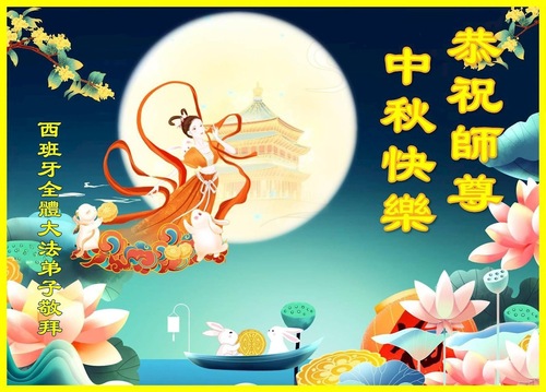 Falun-Dafa-Praktizierende aus Spanien wünschen Meister Li ein frohes Mittherbstfest