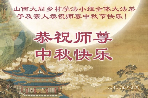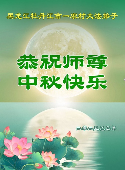 Ein Dafa-Schüler aus dem ländlichen Gebiet der Stadt Mudanjiang, Provinz Heilongjiang, schreibt: „Im Handumdrehen ist ein weiteres Mittherbstfest gekommen. In diesem Jahr sind die Jünger viel reifer geworden. Hinter dieser Reife stehen die große Mühe und Hingabe des Meisters! In diesem Jahr traut sich Ihr Jünger endlich zu sagen: Meister, bitte seien Sie versichert: Egal wie lange die Fa-Berichtigung noch andauert und wie die Lage sein wird, bleibt Ihr Jünger felsenfest. Ich werde das Fa lernen, nach innen suchen und die drei Dinge lächelnd gut erledigen. Meister, bitte machen Sie sich keine Sorgen!“