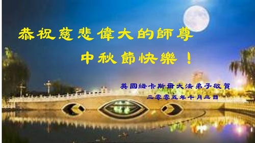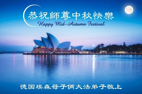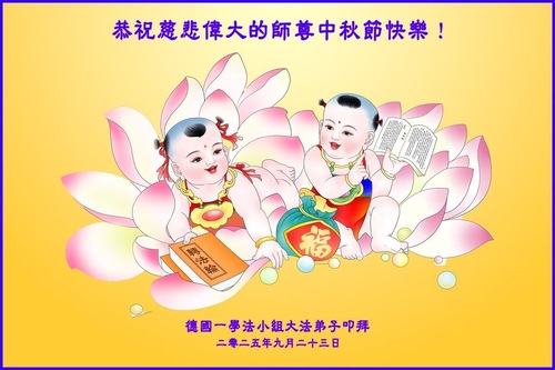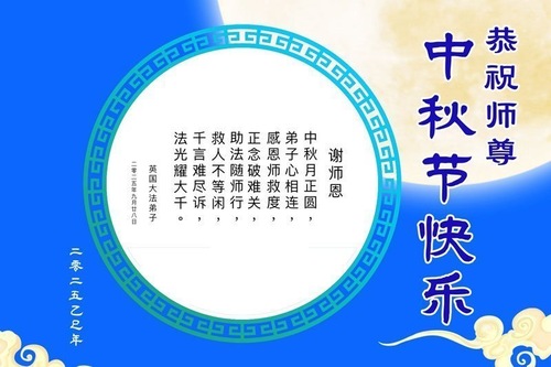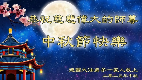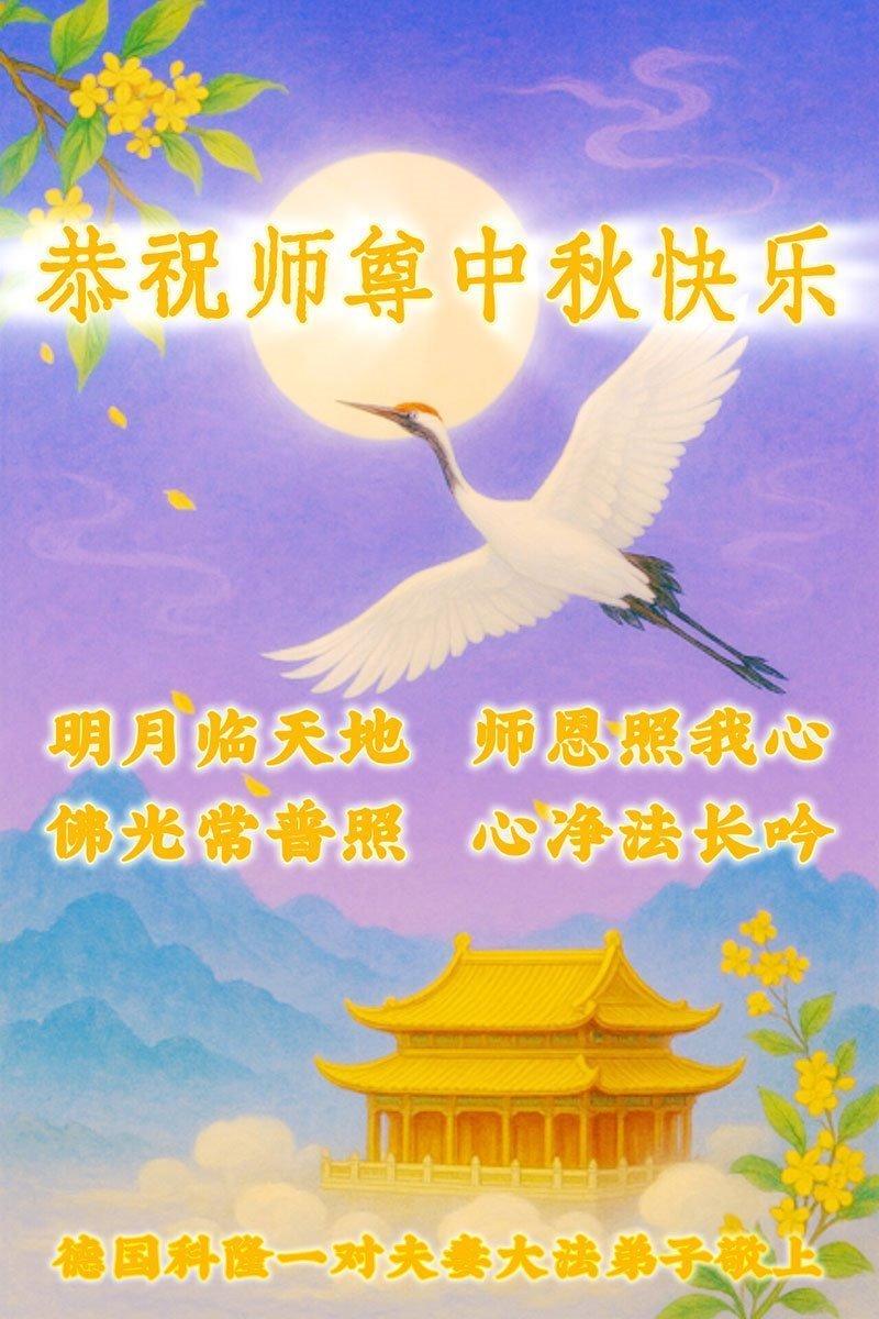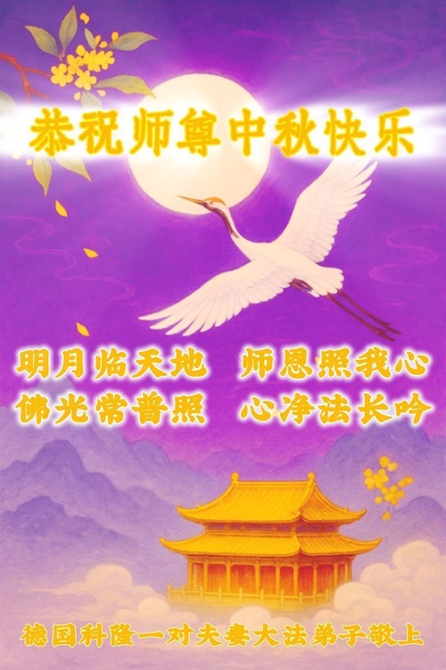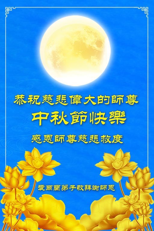 (Minghui.org) Zum Mittherbstfest senden Falun-Dafa-Praktizierende aus aller Welt Glückwünsche und Grußkarten an die Minghui-Website. Damit wünschen sie dem verehrten Meister Li Hongzhi respektvoll ein frohes Fest und danken für die Lehre des Falun Dafa mit den universellen Werten Wahrhaftigkeit, Güte und Nachsicht.