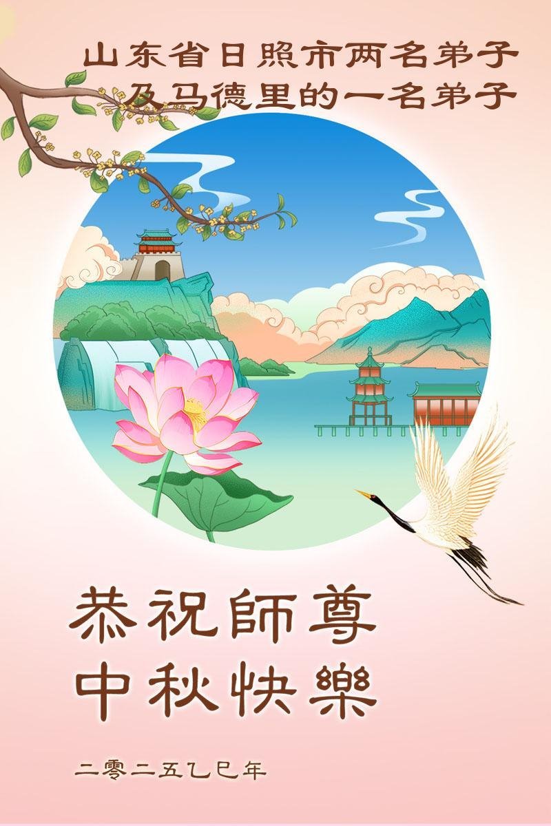 (Minghui.org) Zum Mittherbstfest senden Falun-Dafa-Praktizierende aus aller Welt Glückwünsche und Grußkarten an die Minghui-Website. Damit wünschen sie dem verehrten Meister Li Hongzhi respektvoll ein frohes Fest und danken für die Lehre des Falun Dafa mit den universellen Werten Wahrhaftigkeit, Güte und Nachsicht.