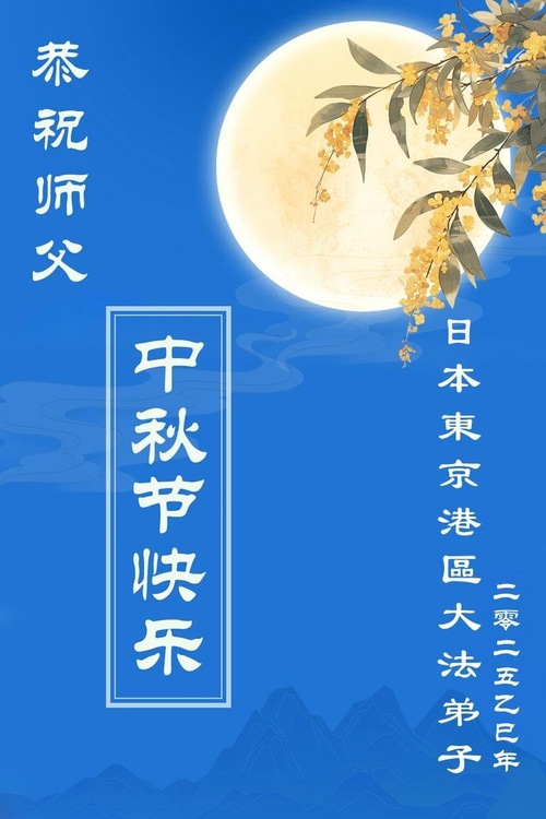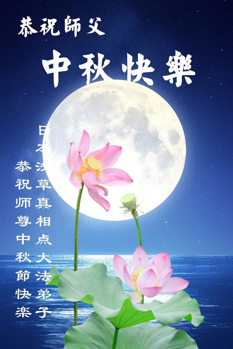 (Minghui.org) Zum Mittherbstfest senden Falun-Dafa-Praktizierende aus aller Welt Glückwünsche und Grußkarten an die Minghui-Website. Damit wünschen sie dem verehrten Meister Li Hongzhi respektvoll ein frohes Fest und danken für die Lehre des Falun Dafa mit den universellen Werten Wahrhaftigkeit, Güte und Nachsicht.