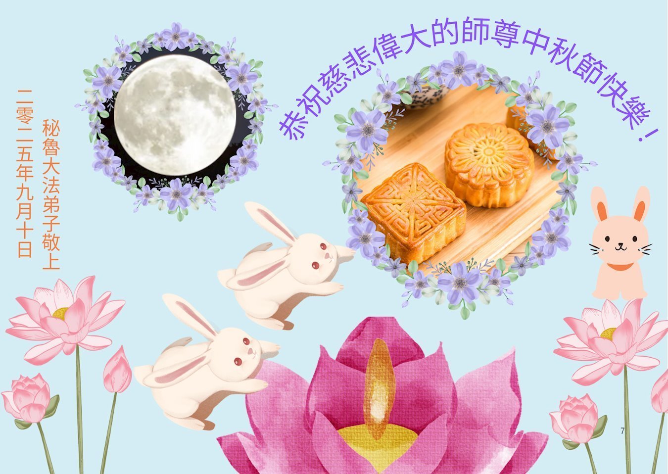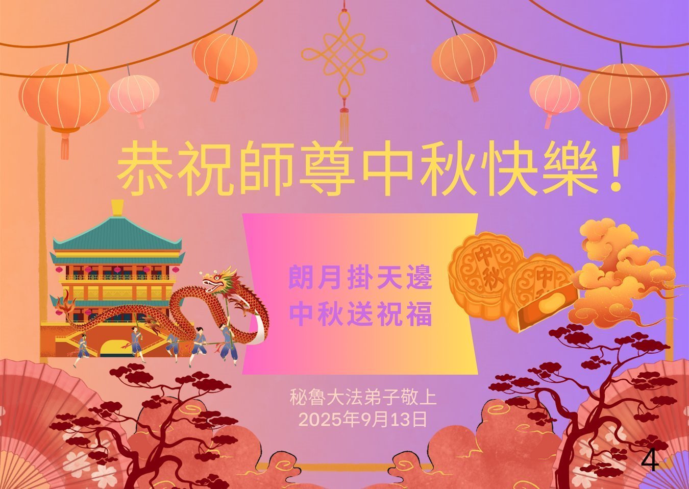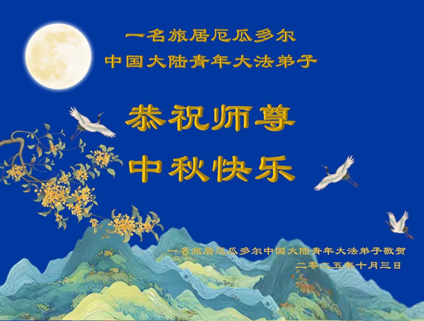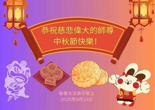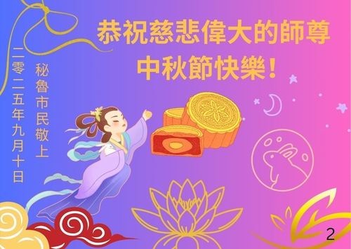 (Minghui.org) Zum Mittherbstfest senden Falun-Dafa-Praktizierende aus aller Welt Glückwünsche und Grußkarten an die Minghui-Website. Damit wünschen sie dem verehrten Meister Li Hongzhi respektvoll ein frohes Fest und danken für die Lehre des Falun Dafa mit den universellen Werten Wahrhaftigkeit, Güte und Nachsicht.
