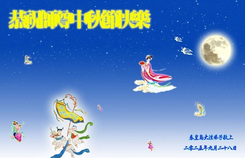 (Minghui.org) Zum Mittherbstfest senden Falun-Dafa-Praktizierende aus aller Welt Glückwünsche und Grußkarten an die Minghui-Website. Damit wünschen sie dem verehrten Meister Li Hongzhi respektvoll ein frohes Fest und danken für die Lehre des Falun Dafa mit den universellen Werten Wahrhaftigkeit, Güte und Nachsicht.