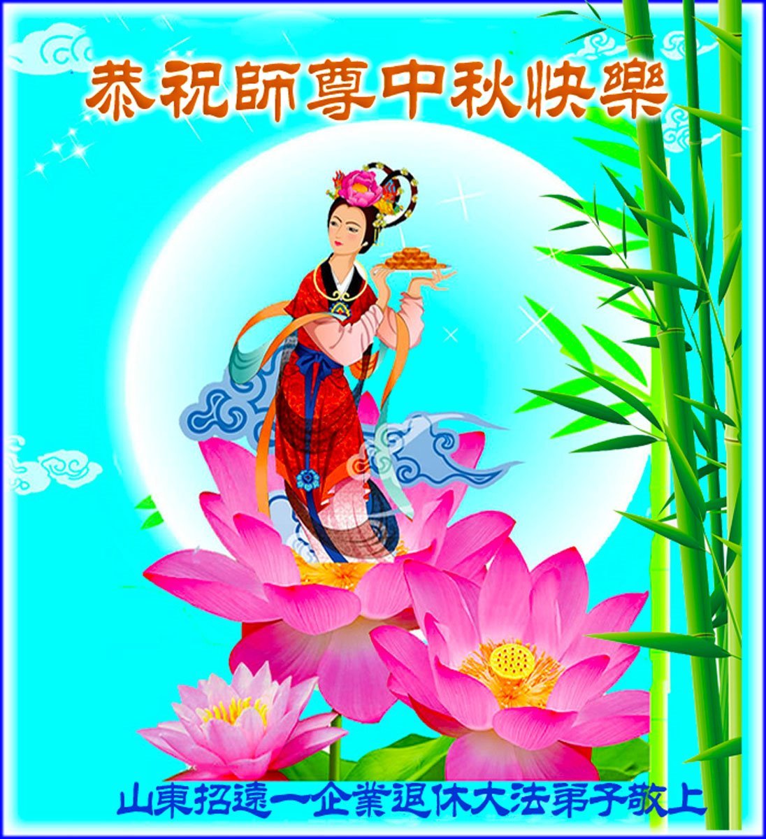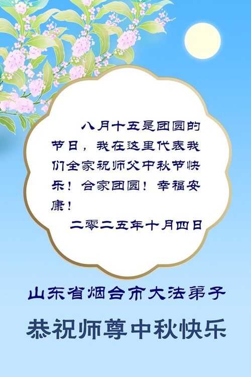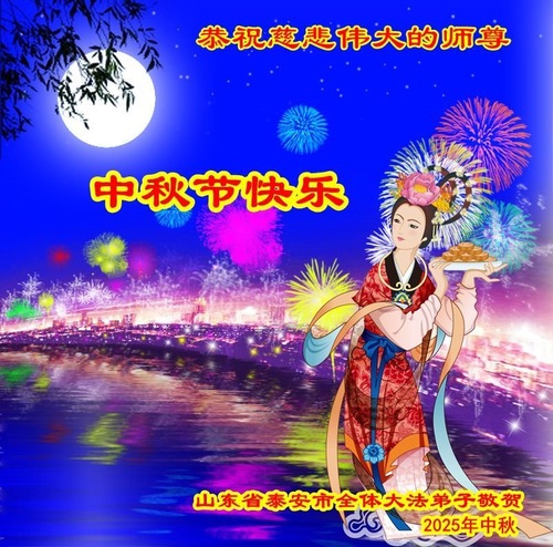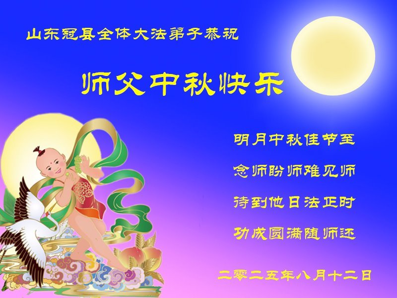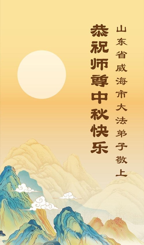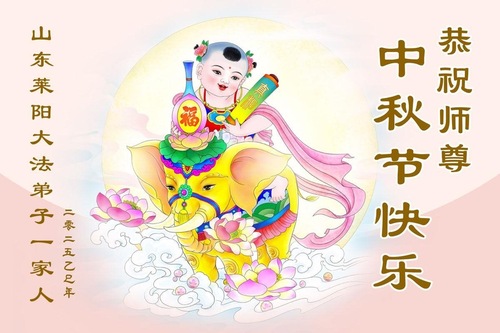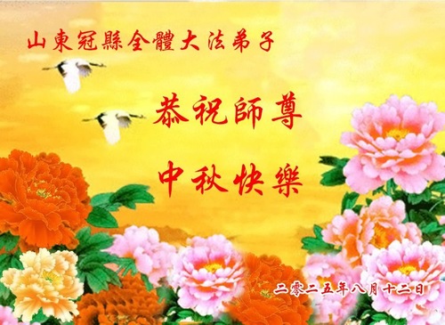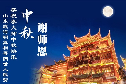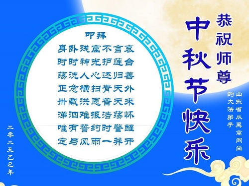 Falun-Dafa-Praktizierende in der chinesischen Provinz Shandong wünschen dem verehrten Meister respektvoll ein frohes Mittherbstfest! (140 Grüße)