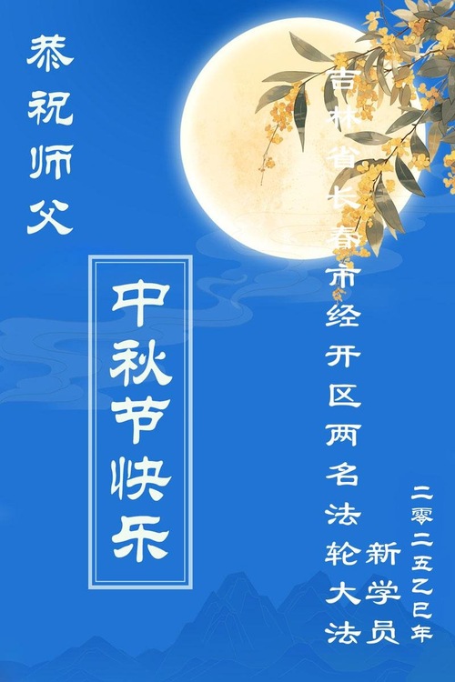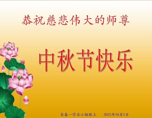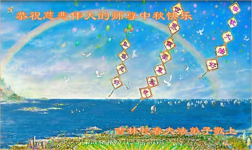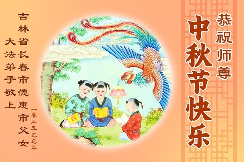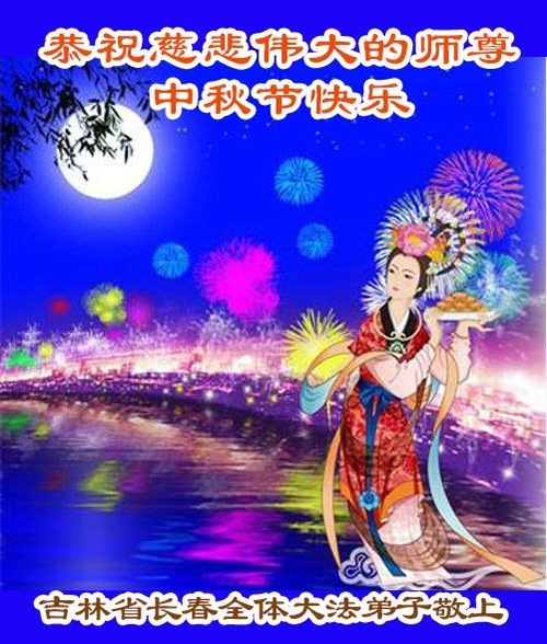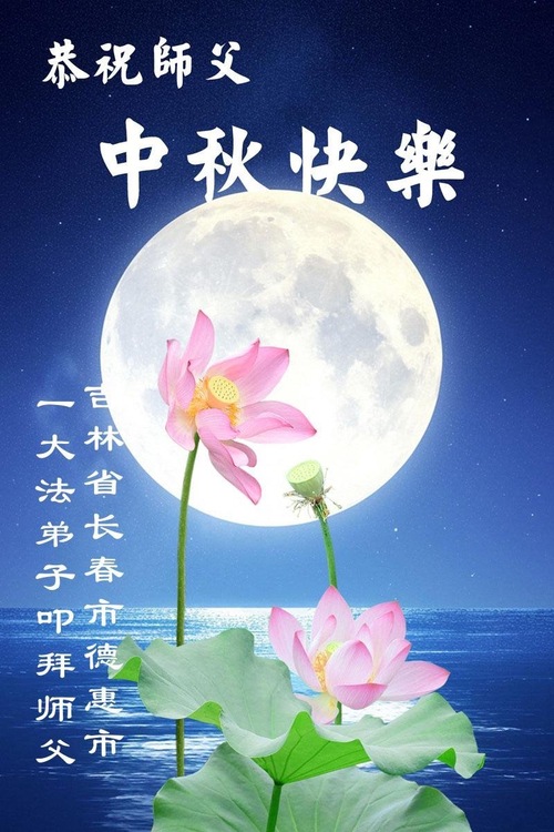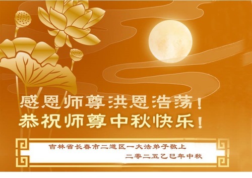 Falun-Dafa-Praktizierende in der chinesischen Stadt Changchun wünschen dem verehrten Meister respektvoll ein frohes Mittherbstfest! (144 Grüße)