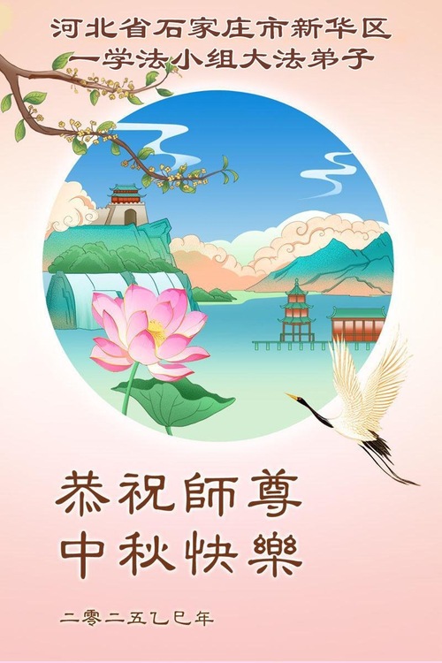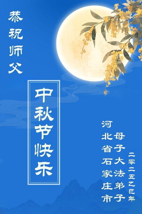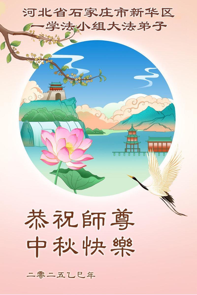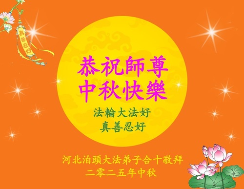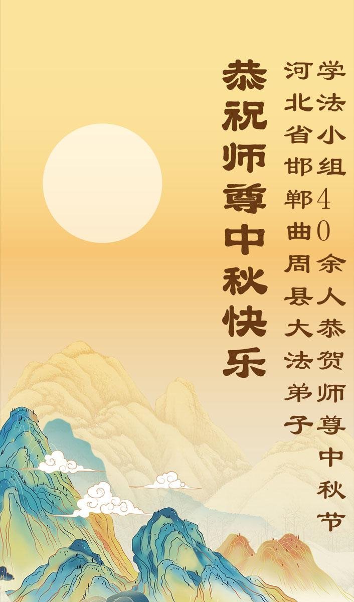 Falun-Dafa-Praktizierende in der chinesischen Provinz Hebei wünschen dem verehrten Meister respektvoll ein frohes Mittherbstfest! (124 Grüße)