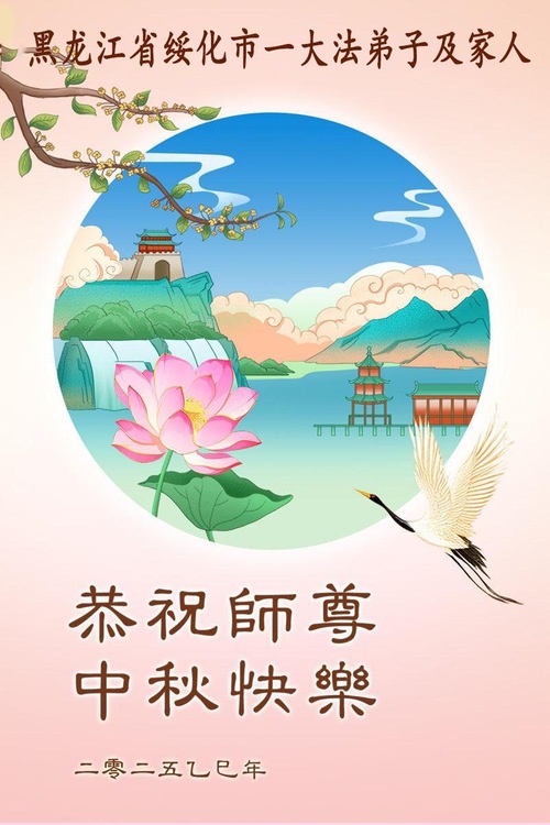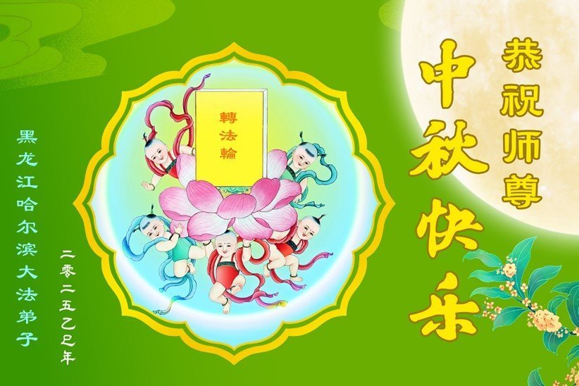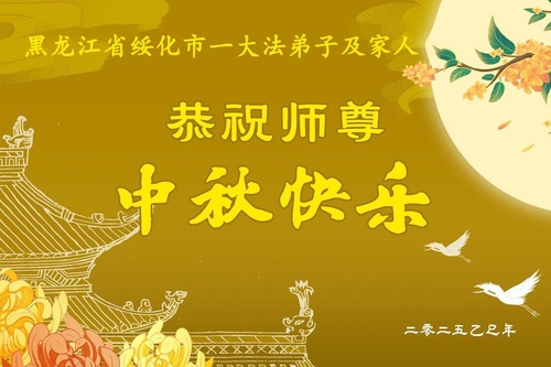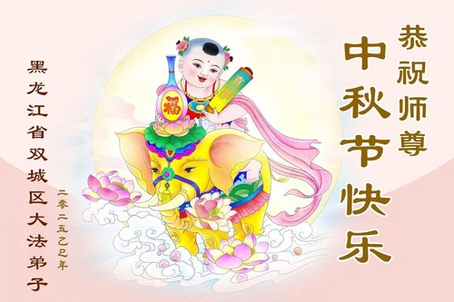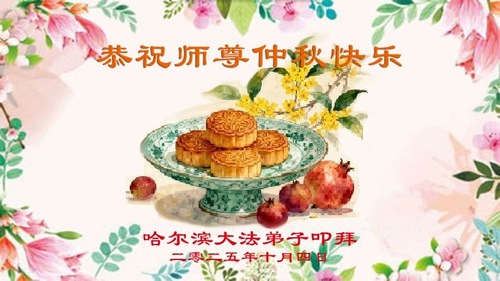 Falun-Dafa-Praktizierende in der chinesischen Provinz Heilongjiang wünschen dem verehrten Meister respektvoll ein frohes Mittherbstfest! (120 Grüße)