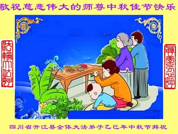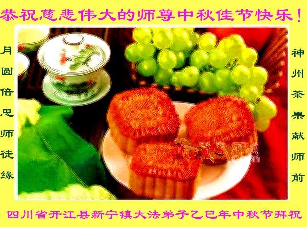 (Minghui.org) Zum Mittherbstfest senden Falun-Dafa-Praktizierende aus aller Welt Glückwünsche und Grußkarten an die Minghui-Website. Damit wünschen sie dem verehrten Meister Li Hongzhi respektvoll ein frohes Fest und danken für die Lehre des Falun Dafa mit den universellen Werten Wahrhaftigkeit, Güte und Nachsicht.