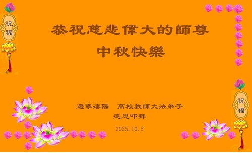 (Minghui.org) Zum Mittherbstfest senden Falun-Dafa-Praktizierende aus aller Welt Glückwünsche und Grußkarten an die Minghui-Website. Damit wünschen sie dem verehrten Meister Li Hongzhi respektvoll ein frohes Fest und danken für die Lehre des Falun Dafa mit den universellen Werten Wahrhaftigkeit, Güte und Nachsicht.