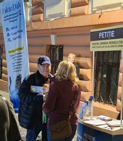 MihaelaPop, eine Arzthelferin, meinte, sie habe schon einmal von Falun Dafa gehört und die gemeinsame spirituelle Essenz bemerkt, die Rumänen und Chinesen teilen würden. „Vor einigen Jahren, ich glaube es war vor der Pandemie, hörte ich zum ersten Mal von Falun Dafa. Ich ging im Tăbăcăriei-Park spazieren und sah das Transparent. Daraufhin ging ich ins Internet und informierte mich darüber. Ich glaube, dass Rumänen mit Wahrhaftigkeit, Güte und Toleranz geboren werden, denn unser orthodoxer Glaube basiert darauf.“