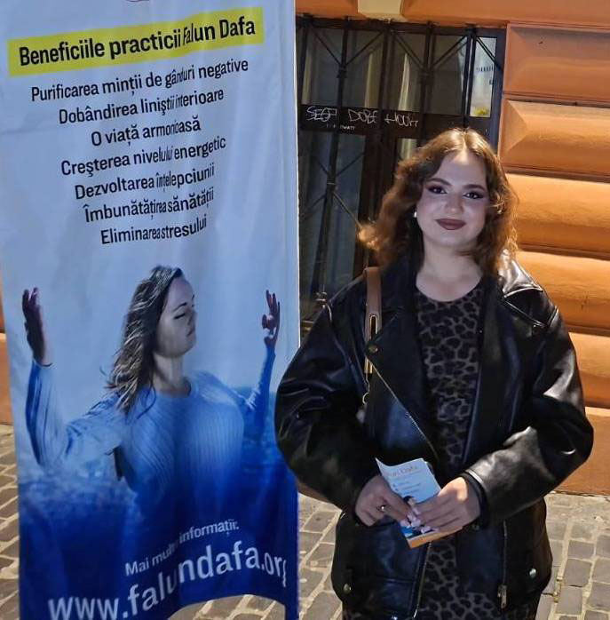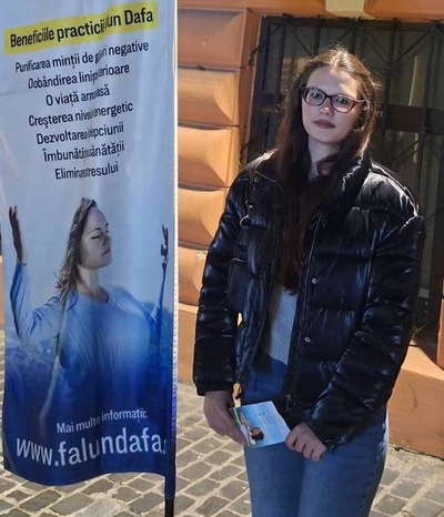 Irina Vatagu, Studentin an der Geisteswissenschaftlichen Fakultät in Brașov, erzählte, das Transparent und die Musik hätten ihre Aufmerksamkeit erregt. Deshalb sei sie zum Stand gegangen. „Als ich die Musik zum ersten Mal hörte, fragte ich mich, was los ist, denn so etwas sieht man normalerweise nicht in der Innenstadt. Dann las ich das Transparent und fand die Sache sehr gut, deshalb habe ich die Petition unterschrieben“, erklärte sie. Irina sieht die Werte von Falun Dafa als einen Weg zu einer ausgewogenen Gesellschaft, die allen Mitgliedern zugutekommt.