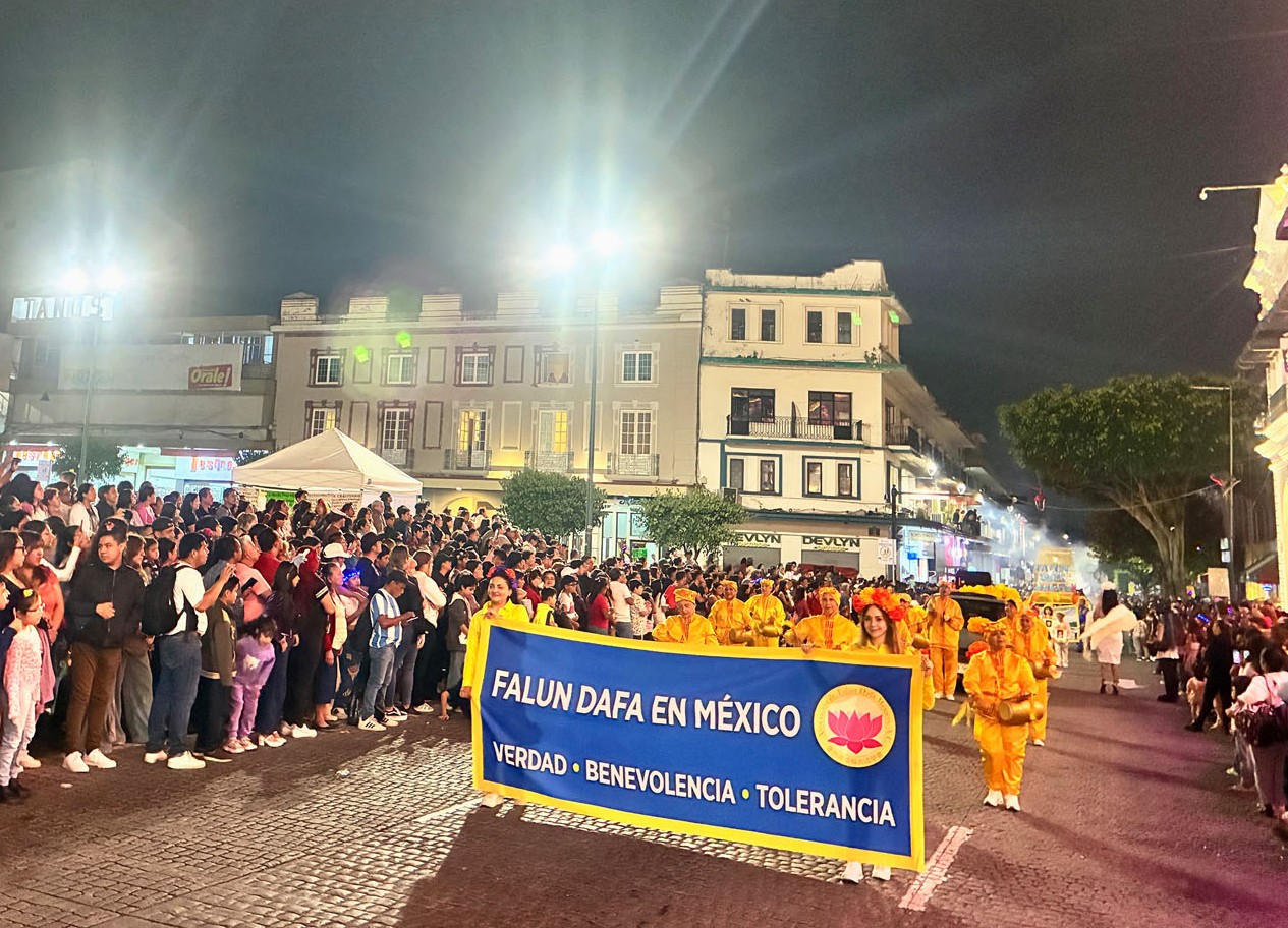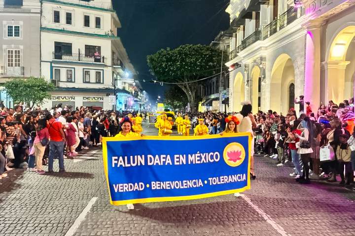 Praktizierende aus sechs verschiedenen Bundesstaaten marschierten durch die Hauptstraßen im Zentrum von Veracruz, der Hauptstadt des Bundesstaates am Golf von Mexiko. Ihre leuchtend gelbe Kleidung zog die Blicke der Zuschauer auf sich. Die Falun-Dafa-Gruppe bestach durch ihre leuchtenden Farben und ihr auffälliges Erscheinungsbild sowie durch die von den Praktizierenden ausgestrahlte Ordnung und Harmonie.