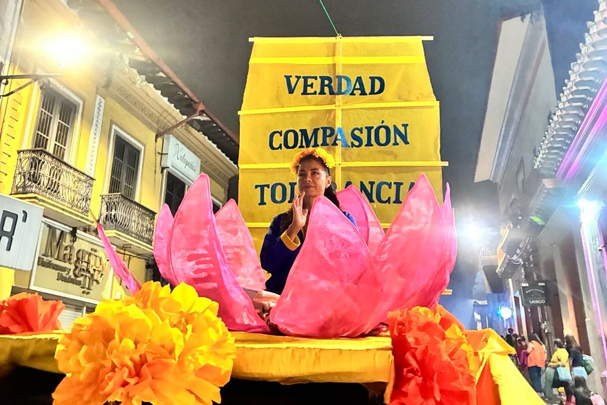 (Minghui.org) Die Praktizierenden nahmen am 25. Oktober 2025 an der Catrinas-Parade in Xalapa, der Hauptstadt des Bundesstaates Veracruz, teil. Sie vermittelten die Falun-Dafa-Prinzipien Wahrhaftigkeit, Güte und Nachsicht. Insgesamt 48 weitere Gruppen beteiligten sich an der Parade.