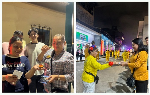 Laura May Vázquez, eine examinierte Krankenschwester und Thanatologin, die aus Mexiko City, wo sie derzeit arbeitet, zu Besuch war, sagte, dass sie beim Anblick der Falun-Dafa-Gruppe ein tiefes Gefühl des Friedens verspürt habe und sich für diesen Kultivierungsweg interessiere, von dem sie noch nie gehört hatte.