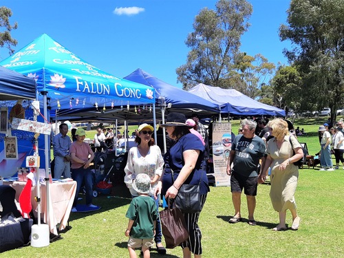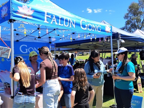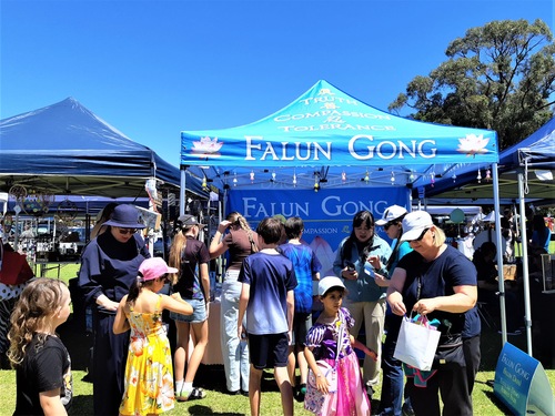 (Minghui.org) Am 8. November 2025 fand die jährliche Rotary-Kwinana-Gemeindemesse in Calista, südlich von Perth, statt. Über 100 Stände waren vertreten. Auch die Falun-Dafa-Praktizierenden präsentierten sich dort mit einem eigenen Stand, was zahlreiche Besucher anzog. Einige wollten die Übungen gleich direkt vor Ort erlernen.