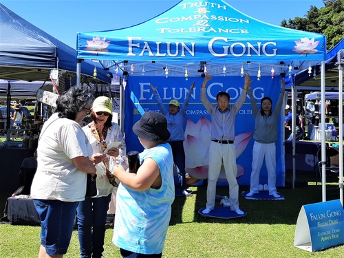 Die Praktizierenden zeigten die fünf Übungen, stellten Falun Dafa vor und machten auf die Verfolgung durch die Kommunistische Partei Chinas (KPCh) aufmerksam. Zahlreiche Besucher unterzeichneten eine Petition, die ein Ende der Menschenrechtsverletzungen forderte.