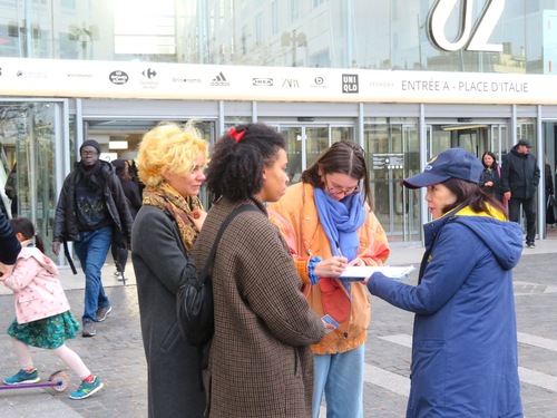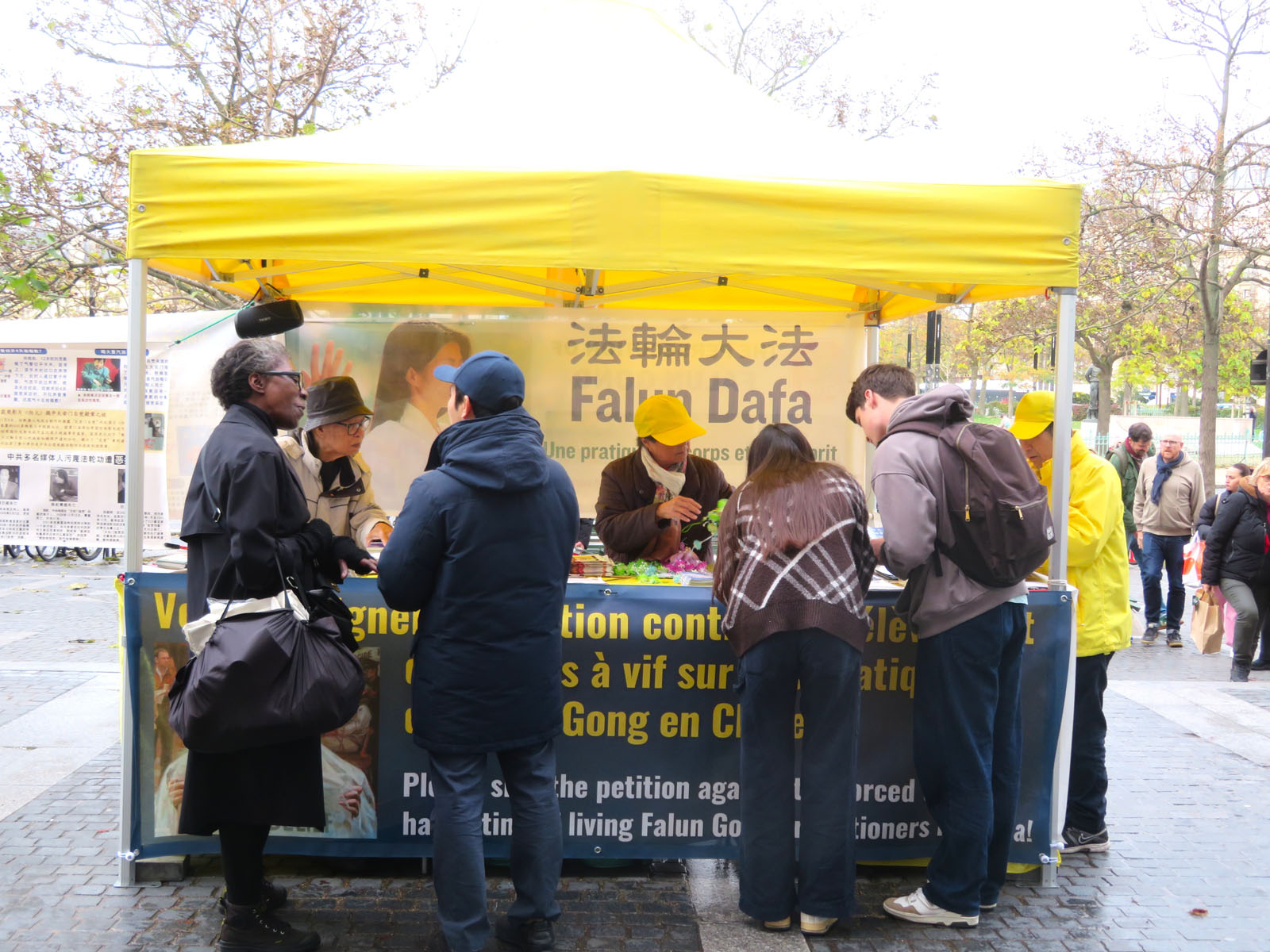 Bei einer Veranstaltung auf der Place d’Italie am 8. November 2025 stellten Praktizierende Falun Dafa vor und machten auf die Verfolgung aufmerksam. Viele Menschen unterzeichneten die Petition gegen die Verfolgung. Einige lernten die Falun-Dafa-Übungen kennen und erkundigten sich nach Gruppenübungsplätzen.