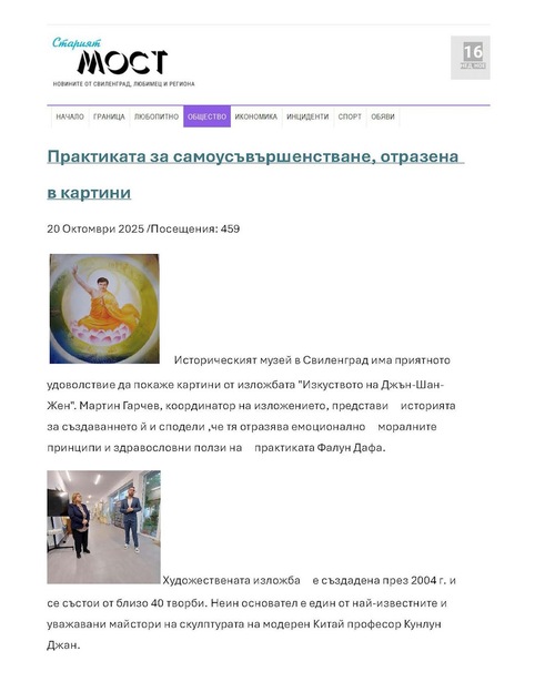 (Minghui.org) Am 20. Oktober 2025 wurde die Ausstellung „Die Kunst von Zhen Shan Zhen“ (Wahrhaftigkeit, Güte, Nachsicht) im Historischen Museum der Stadt Svilengrad in Bulgarien eröffnet. Während eines Monats – bis 20. November – bietet sie den Einwohnern die Möglichkeit, die universellen Prinzipien von Falun Dafa – Wahrhaftigkeit, Güte und Nachsicht – durch kunstvolle Gemälde zu erleben.