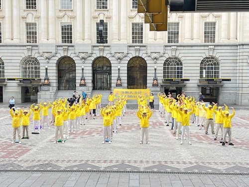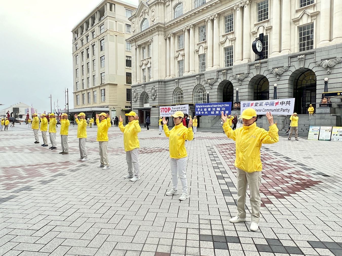 (Minghui.org) Am 15. November 2025 veranstalteten Praktizierende eine Kundgebung und führten die Falun-Dafa-Übungen auf dem Commercial Bay Square durch. Sie wollten die Menschen über Falun Dafa informieren und sie auf die Verfolgung durch die Kommunistische Partei Chinas (KPCh) aufmerksam machen.