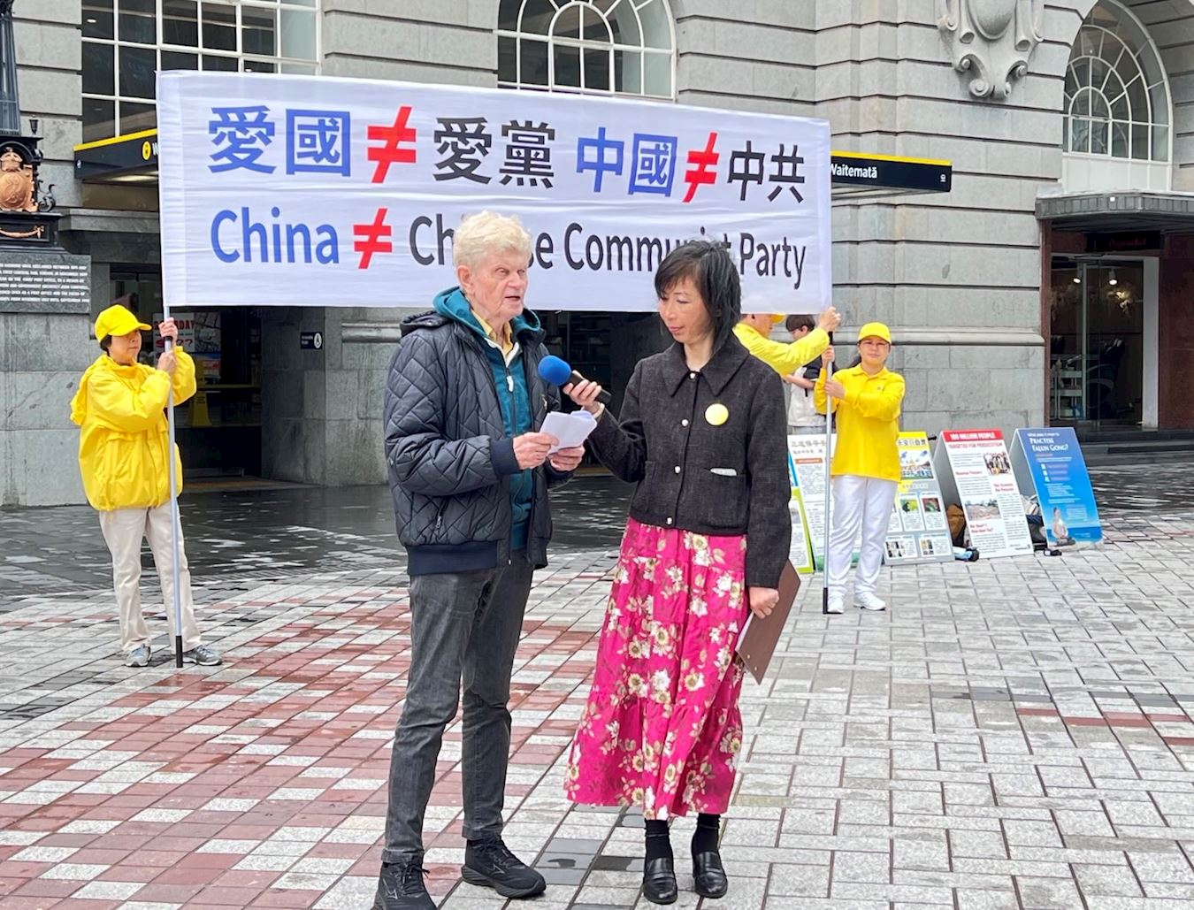 Barry Wilson, ehemaliger Vorsitzender des Auckland Council for Civil Liberties (Rat für Bürgerrechte), und der Menschenrechtsanwalt Kerry Gore hielten Ansprachen auf der Kundgebung. Sie forderten die neuseeländische Regierung, internationale Organisationen und alle Kreise der Gesellschaft auf, der Verfolgung durch die KPCh Aufmerksamkeit zu schenken.