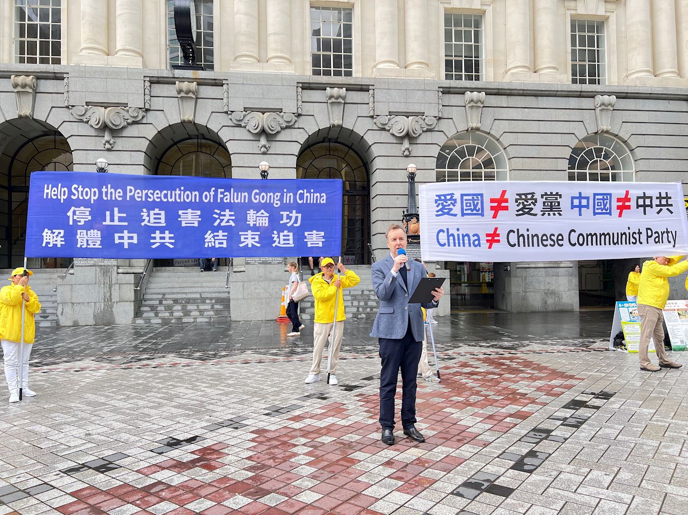 Auch der Menschenrechtsanwalt Kerry Gore hielt eine Rede auf der Kundgebung und verurteilte die seit 26 Jahren andauernde Verfolgung durch die KPCh. Er forderte die internationale Gemeinschaft auf, Maßnahmen zu ergreifen.