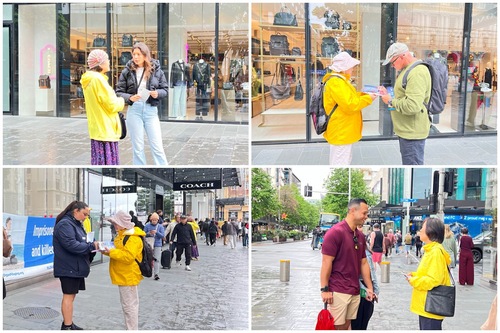 Passanten informieren sich über Dafa und unterzeichnen die Petition zur Beendigung der Verfolgung