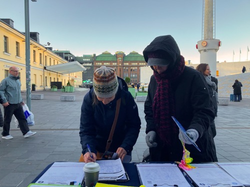 (Minghui.org) Am 15. November 2025 machten Falun-Dafa-Praktizierende in Finnland auf dem Kamppi-Platz in Helsinki auf die Verfolgung von Falun Dafa durch die Kommunistische Partei Chinas (KPCh) aufmerksam. Sie riefen die internationale Gemeinschaft dazu auf, der seit 26 Jahren andauernden Brutalität Aufmerksamkeit zu schenken. Praktizierende in China werden inhaftiert, gefoltert und sind Opfer von staatlich unterstütztem Organraub.
