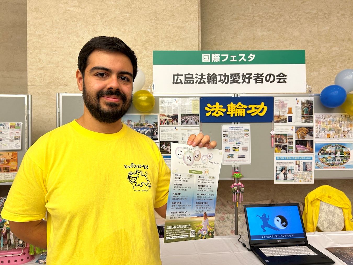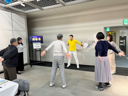 Herr Yoshida ging zum Informationsstand, nachdem er die Darbietung der Praktizierenden auf der Bühne gesehen hatte. Auf Chinesisch lobte er: „Ihre Darbietung ist großartig.“ Dann erkundigte er sich nach Einzelheiten über das Erlernen der Übungen. „Ich hoffe, dass die chinesischen Bürger Handlungs- und Meinungsfreiheit haben werden und nicht mehr Angst haben müssen, sich zu äußern, oder zu Unrecht verurteilt zu werden. Es wäre gut, wenn China eine Gesellschaft wie Japan werden könnte, in der die Menschen ihre Meinung frei äußern können“, hofft er.