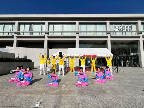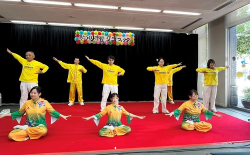 Yoshida lobt die Darbietung der Falun-Dafa-Praktizierenden auf Chinesisch: „Ihr seid erstaunlich.“