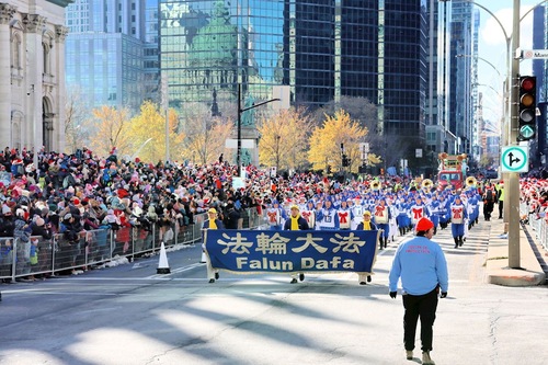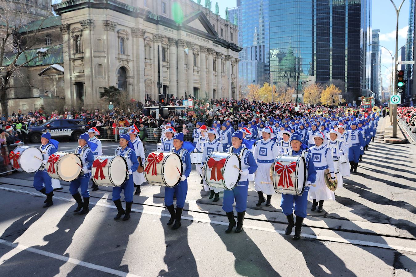 (Minghui.org) Am 22. November 2025 fand die Weihnachtsparade, das größte Fest in Montreal, statt. Die Tian Guo Marching Band nahm an der beliebten Veranstaltung teil und wurde von den Zuschauern begeistert empfangen.