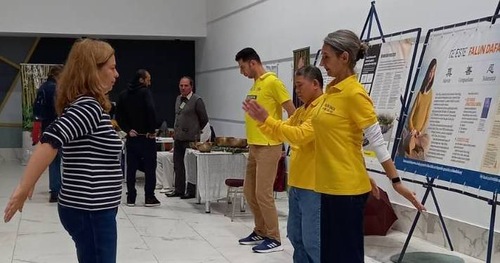 Sie fuhr fort: „Die Teilnehmer waren begeistert, die Übungen zu lernen, und die Atmosphäre war von Harmonie geprägt. Liana erzählte, sie habe schon lange meditieren wollen und bereits begonnen, das Buch Falun Gong zu lesen.“