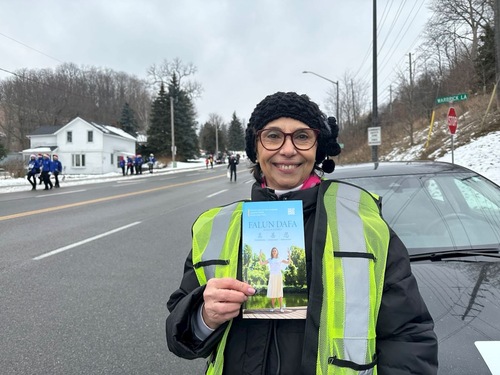 Pia bemerkte auch das Transparent mit der Aufschrift „Falun Dafa“, das vor der Band getragen wurde. Nachdem sie erfahren hatte, dass Falun Dafa auf den Prinzipien Wahrhaftigkeit, Güte und Nachsicht basiert und dass Menschen jedes Alters es praktizieren und davon profitieren, meinte Pia: „Wir müssen gütig und aufrichtig sein, besonders in der aktuellen gesellschaftlichen Lage.“