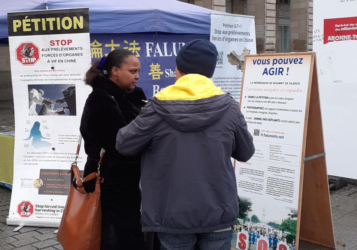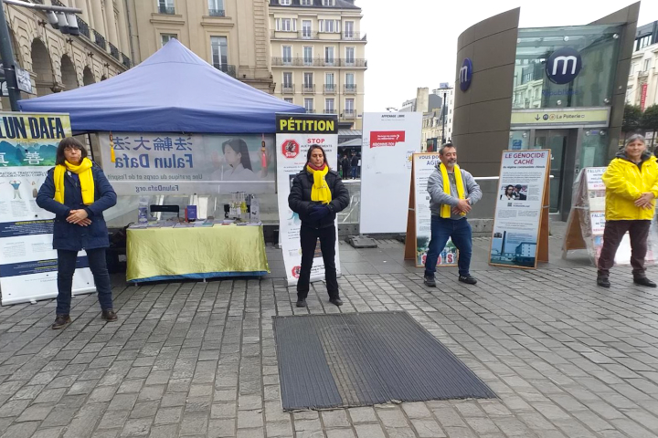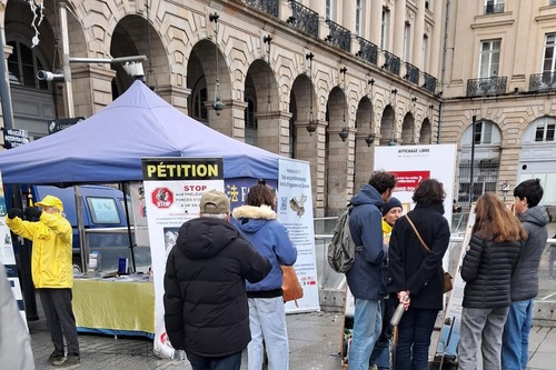 Am 6. Dezember veranstalteten Praktizierende einen Informationstag auf dem Place de la République in Rennes, der Hauptstadt der Bretagne im Nordwesten Frankreichs. Die Veranstaltung zog viele Passanten an, von denen viele Fotos von der Veranstaltung und den Informationstafeln machten.