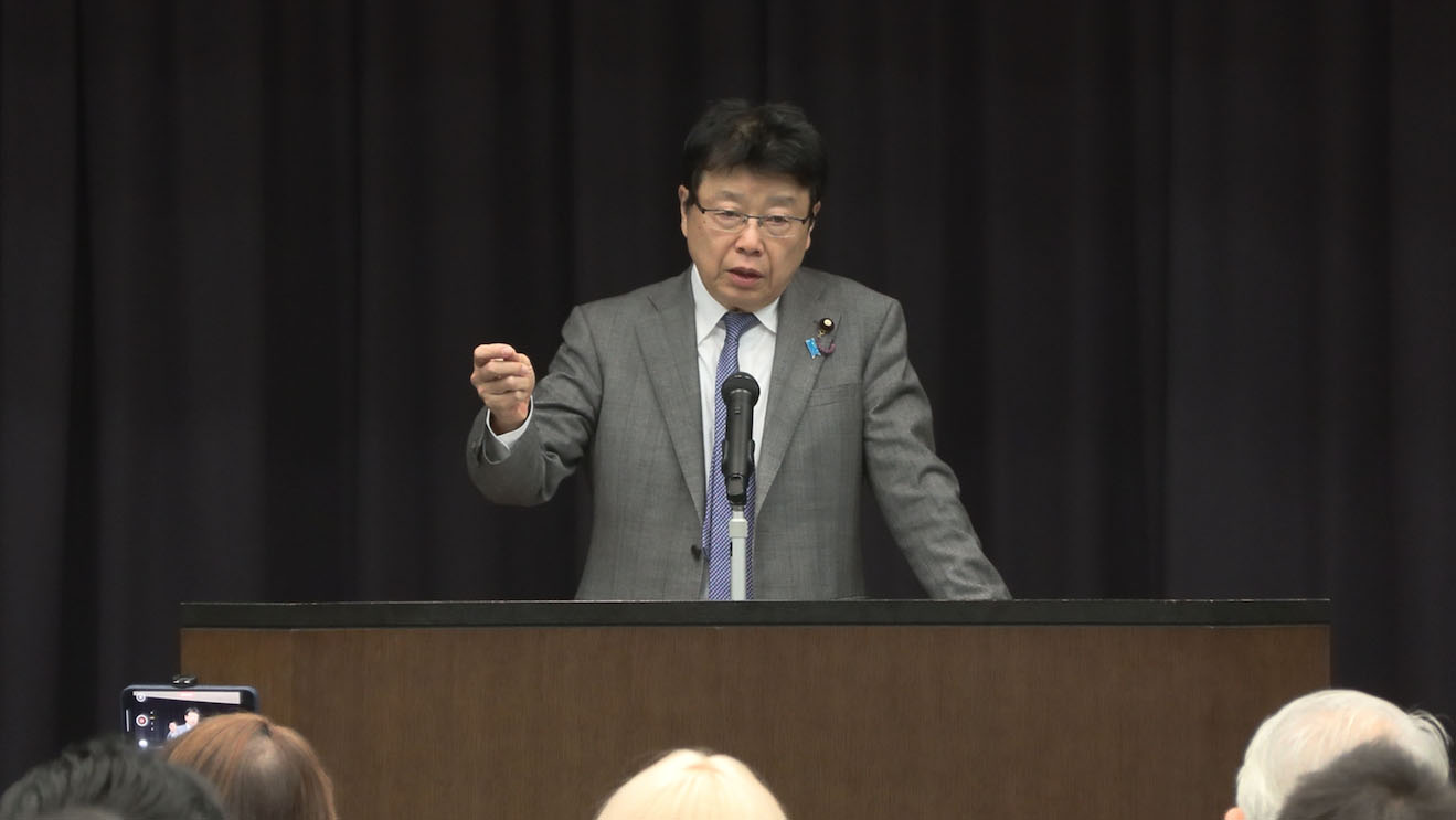 Haruo Kitamura, Mitglied des Oberhauses in Japan, wendet sich an die Anwesenden