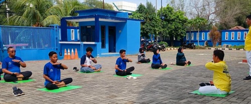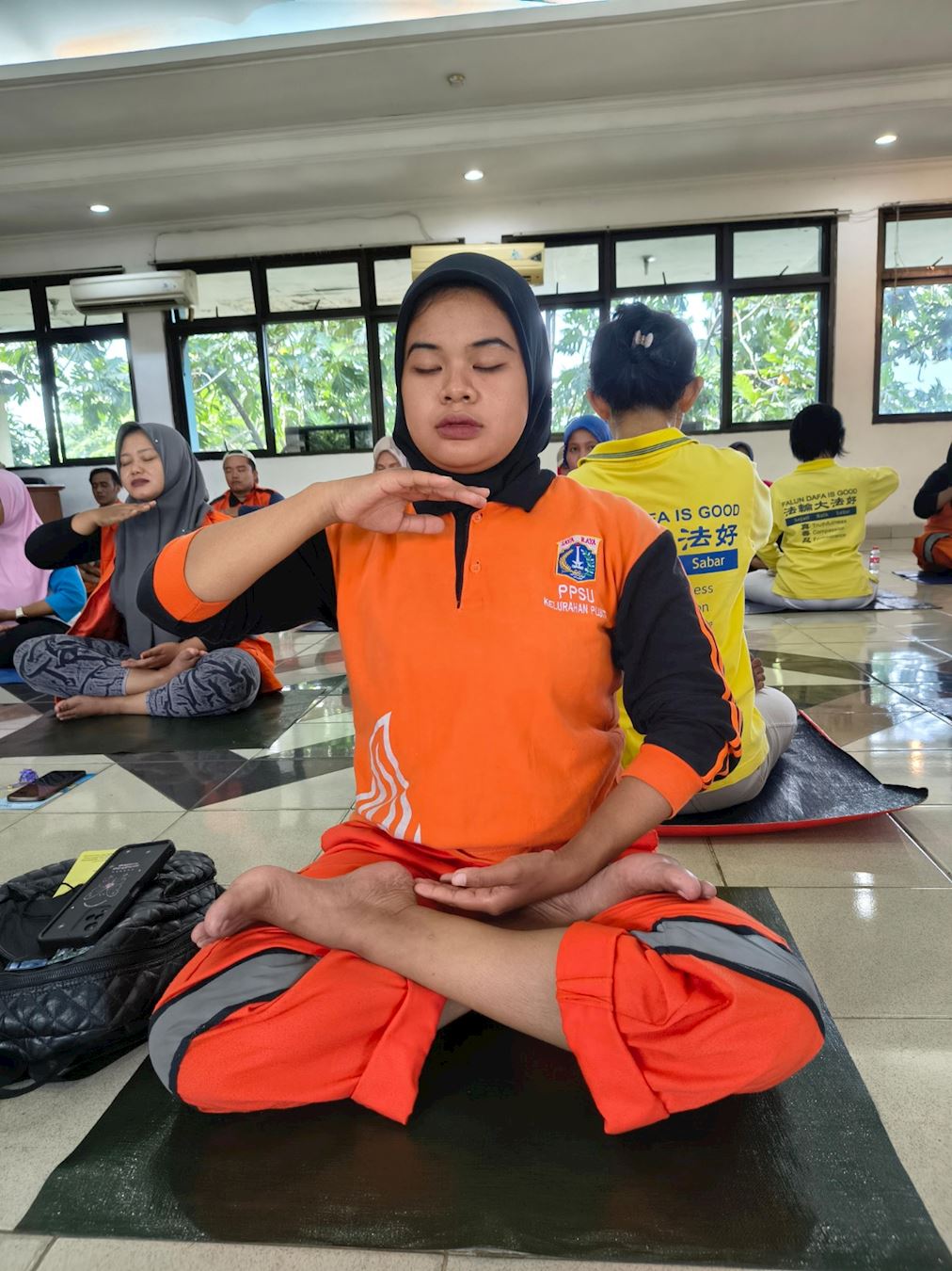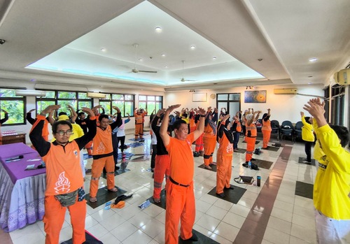Mitarbeiter der Abteilung für öffentliche Infrastruktur und Gebäudemanagement des Unterbezirksbüros Pluit in Nord-Jakarta lernen die Falun-Dafa-Übungen kennen