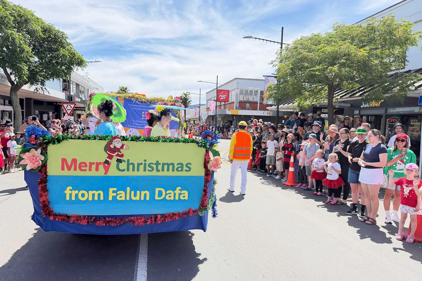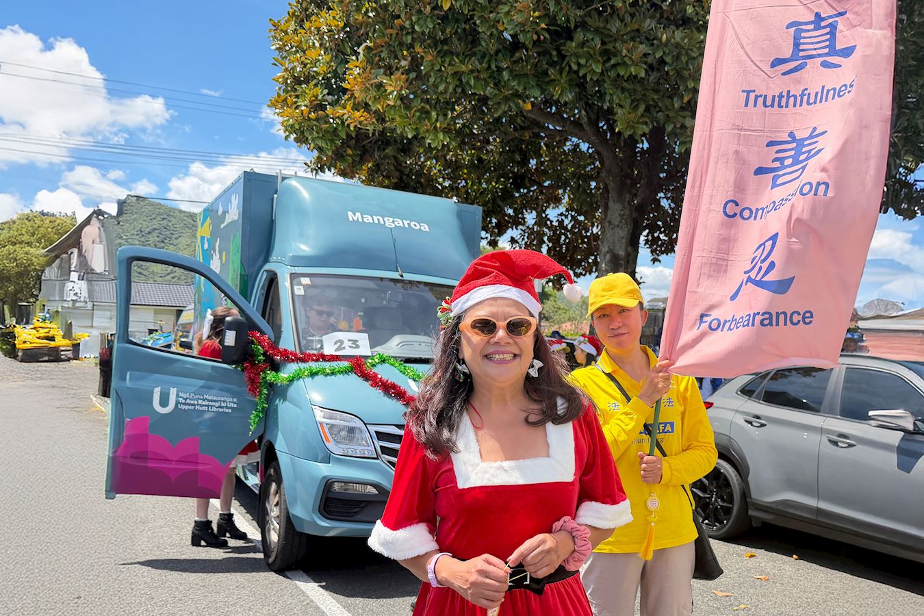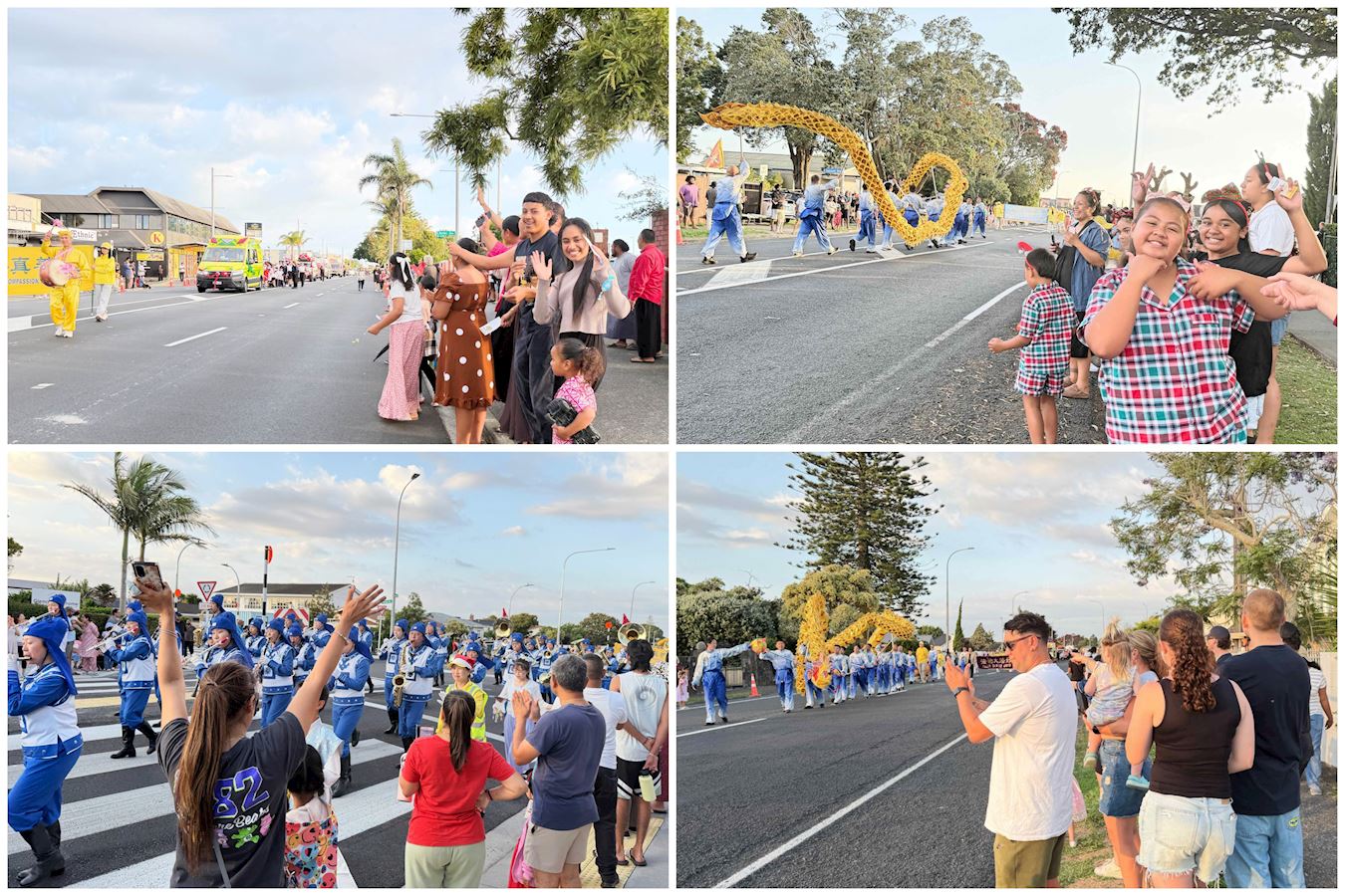 (Minghui.org) Falun-Dafa-Praktizierende in Neuseeland haben sich von November bis Dezember insgesamt an 20 Weihnachtsumzügen beteiligt. Viele Zuschauer zeigten sich beeindruckt von ihren traditionellen Kostümen und der mitreißenden Musik. Man dankte ihnen für ihren Beitrag zur Gemeinschaft und lobte sie für die Prinzipien Wahrhaftigkeit, Güte und Nachsicht.