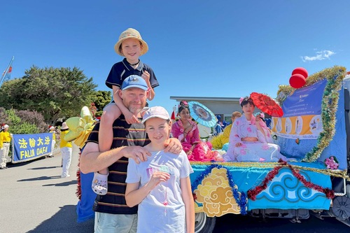 In Kapiti Coast fuhr ein Festwagen mit dem Abgeordneten Tim Costley dem Konvoi der Falun-Dafa-Praktizierenden voraus. Die blauen Uniformen der Tian-Guo-Marschkapelle gefielen ihm sehr und er freute sich, dass Falun-Dafa-Praktizierende bei der Parade mitmachten.