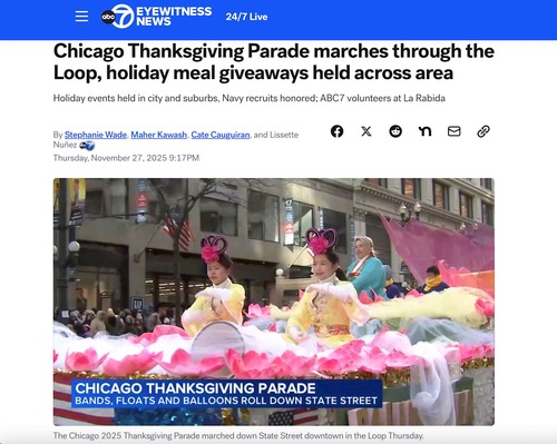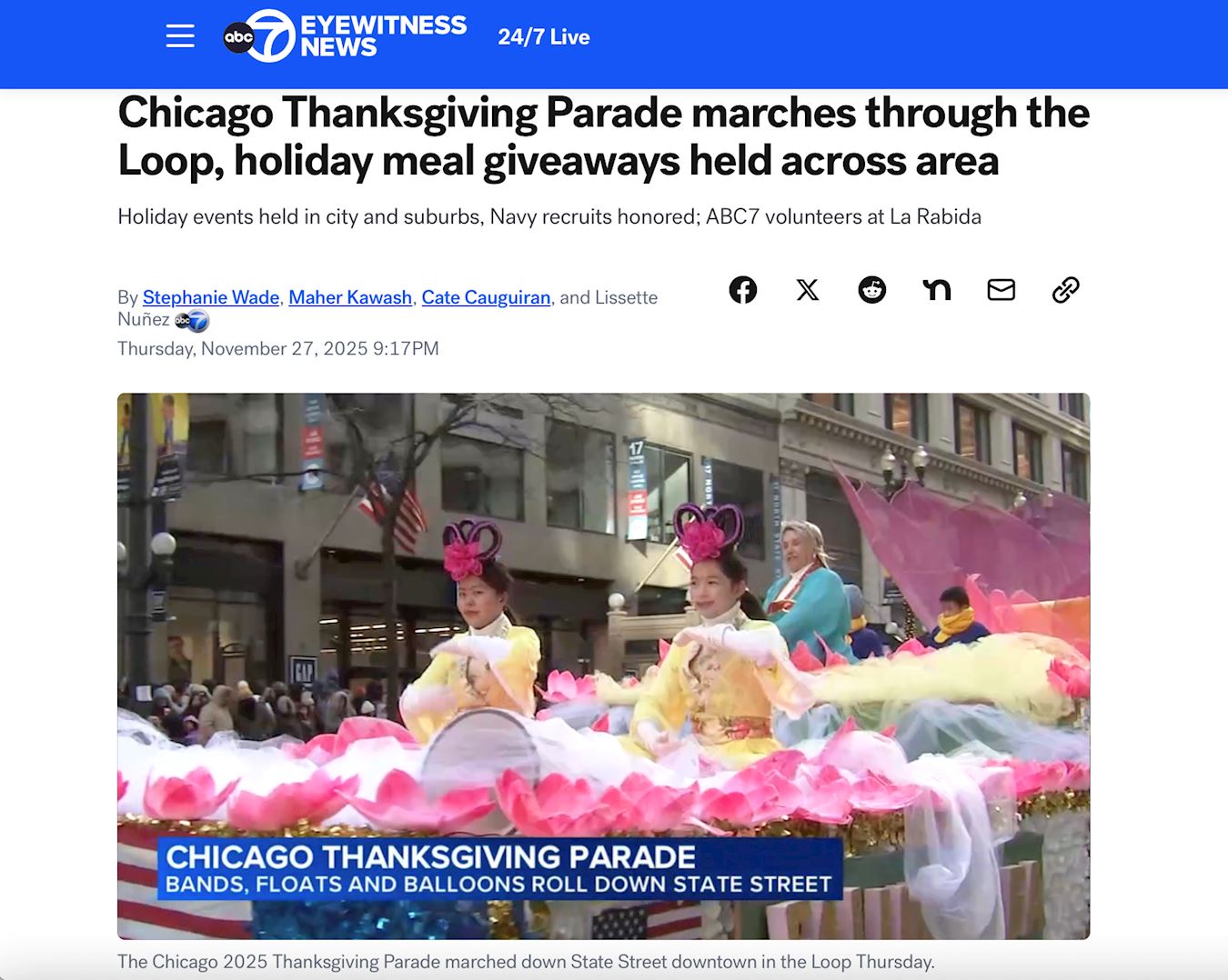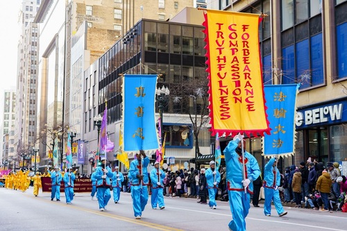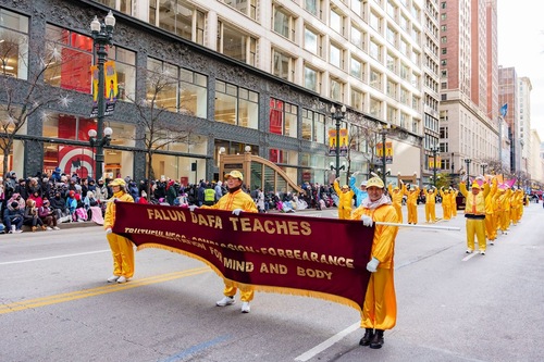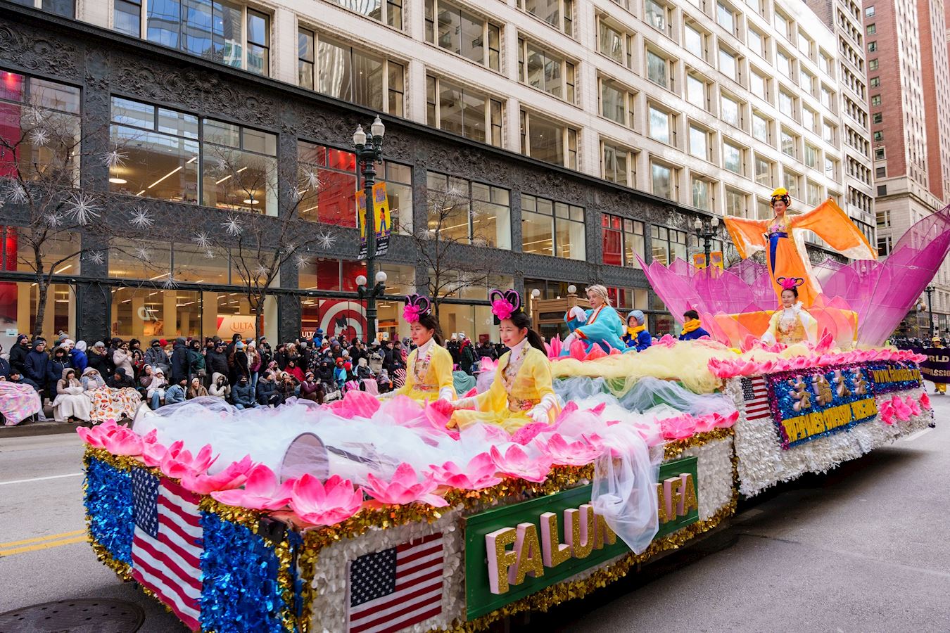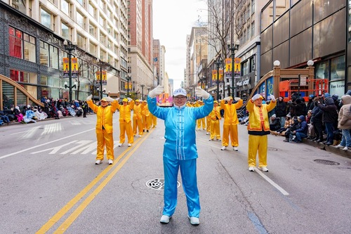 (Minghui.org) Die 91. Thanksgiving-Parade in Chicago fand am 27. November 2025 statt. Es war der bisher kälteste Tag des Winters in Chicago, dennoch säumten viele Zuschauer die Straßen.