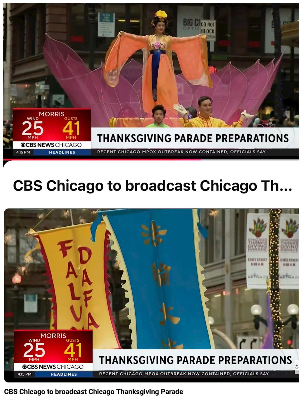 CBS Chicago hebt den Auftritt der Falun-Dafa-Praktizierenden bei der Parade 2024 in seinem 34-Sekunden-Trailer hervor (zusammengestellt aus Screenshots)
