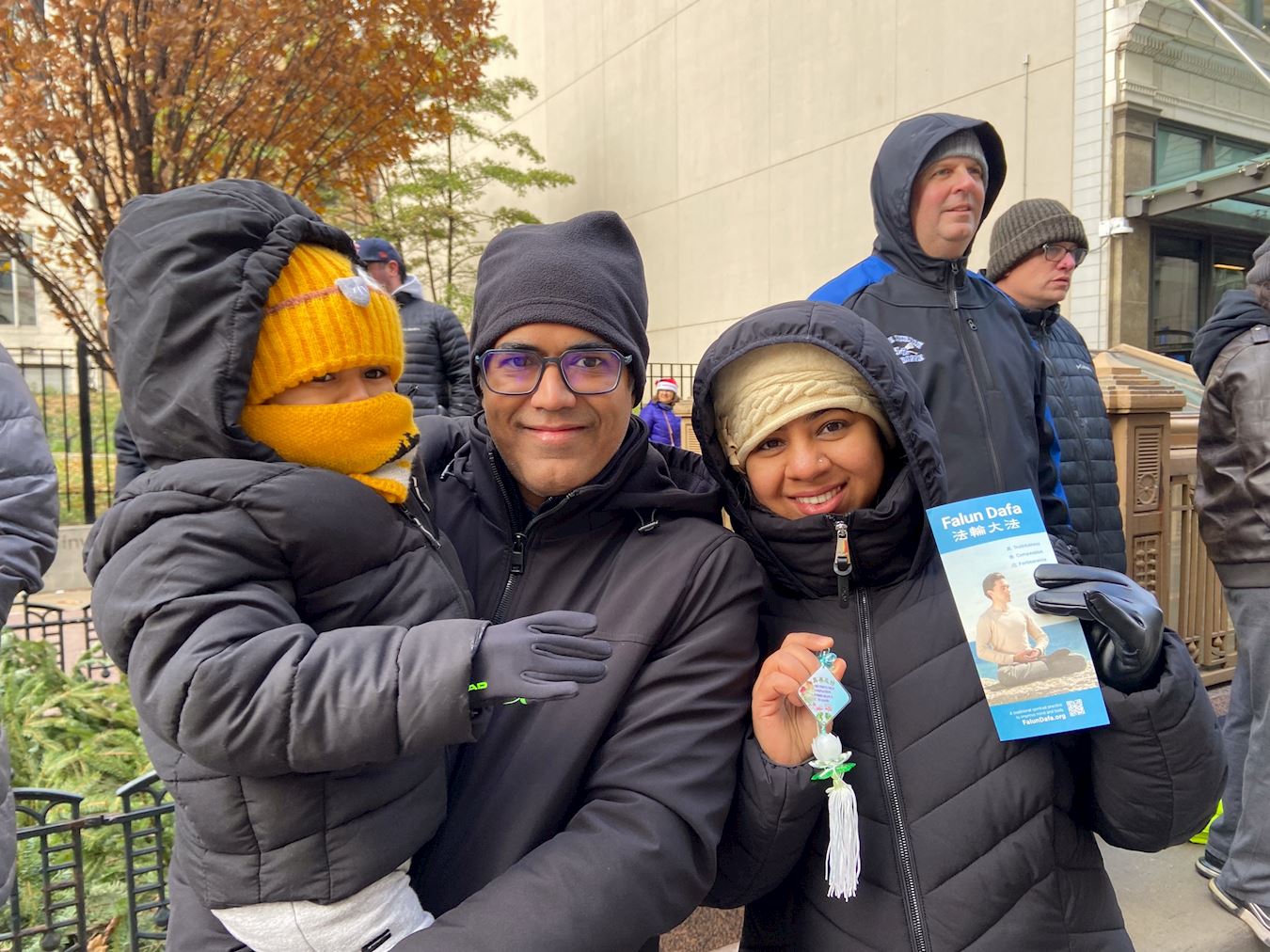 Ekta und Jitesh Virwani aus Naperville, Illinois, freuten sich: „Die Falun-Dafa-Paradegruppe ist großartig und unsere liebste.“ Ekta erklärte, sie sei daran interessiert, mehr über Falun Dafa zu erfahren, und lobte die Prinzipien: „Sie sind erstaunlich.“